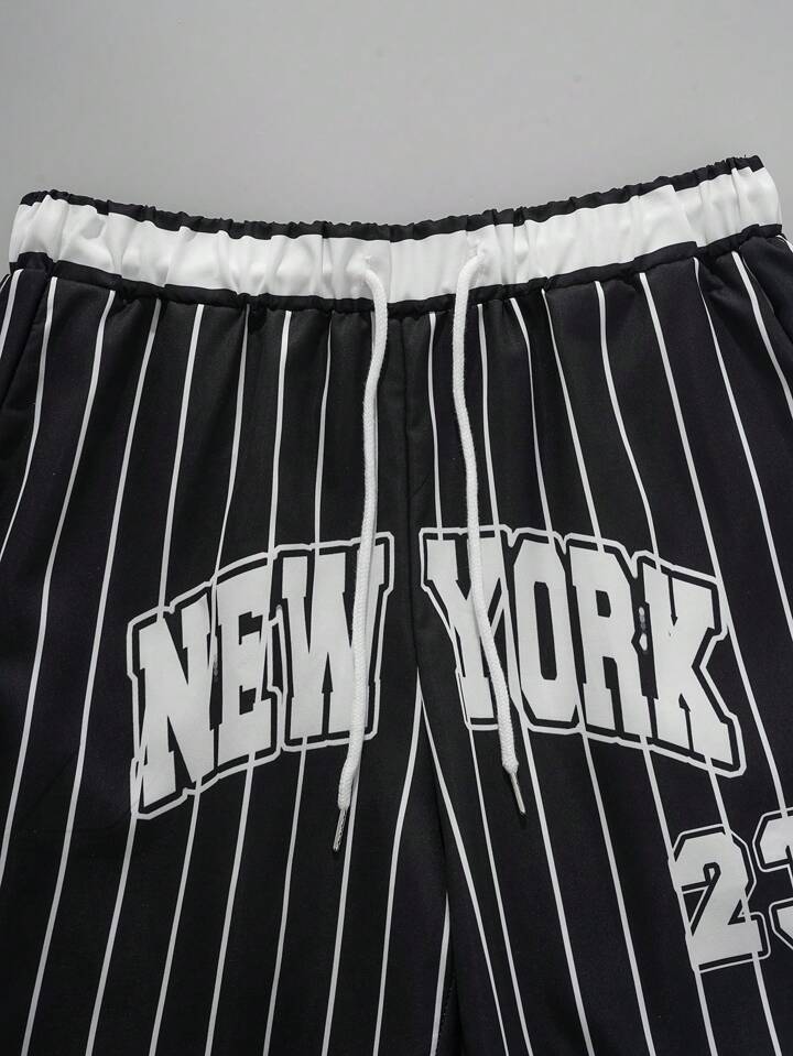 Prep Men's College Style Casual Letter Print Short Sleeve Shirt And Shorts 2 Pieces Baseball Set, Spring/Summer