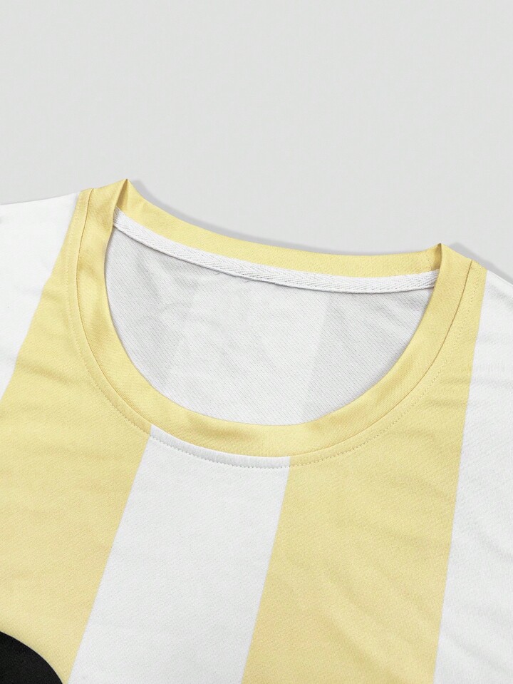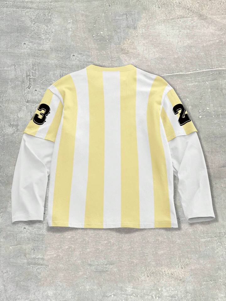 Prep Men's Contrast Stripe & Numeric Print Long Sleeve T-Shirt Sporty Jersey