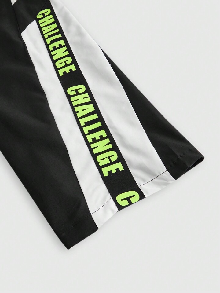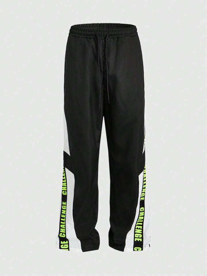 Prep Men's Drawstring Waist Side Letter Print Loose Casual Pants