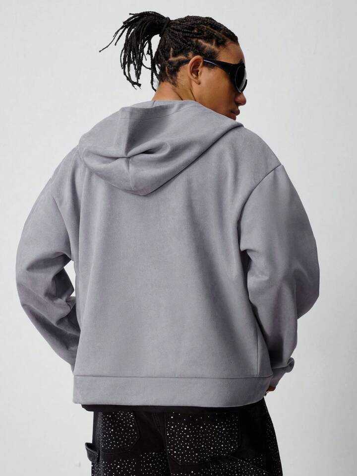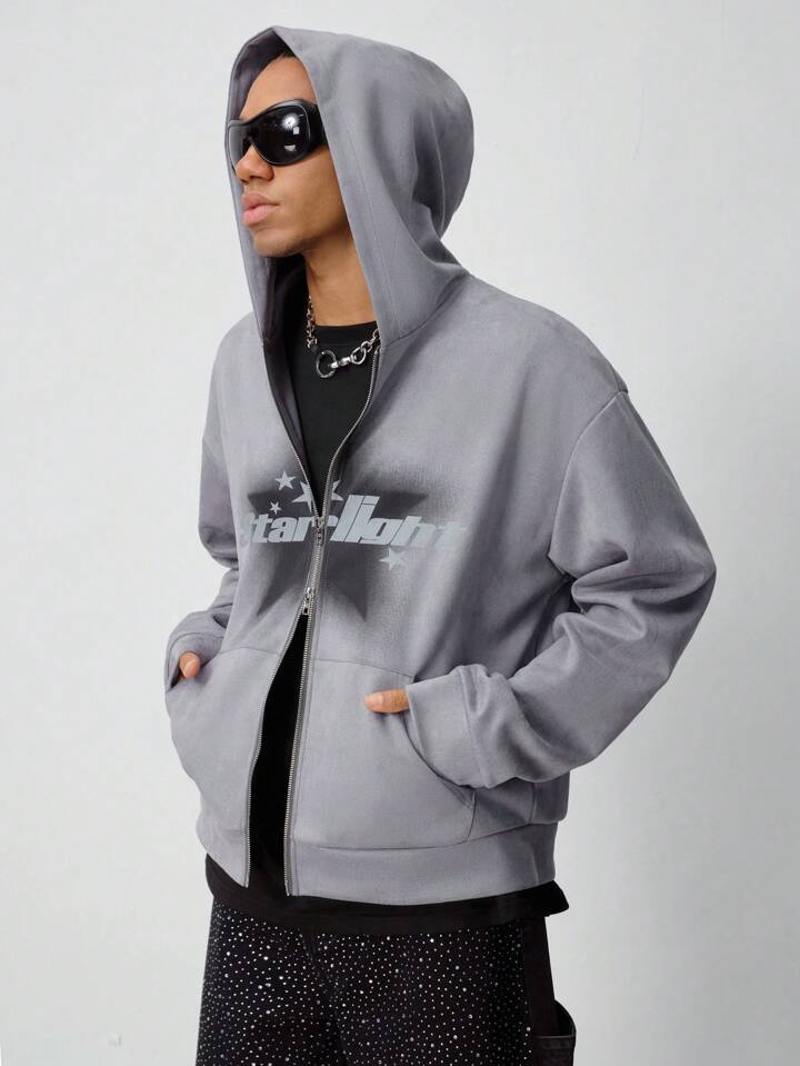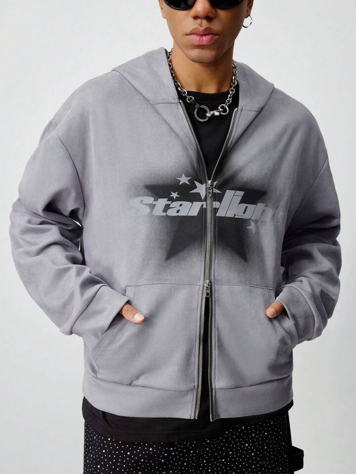 Street Life Men's Front Zip Up Long Sleeve Letter Print Minimalist Hooded Sweatshirt