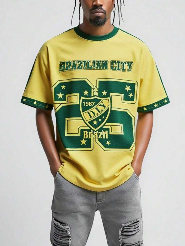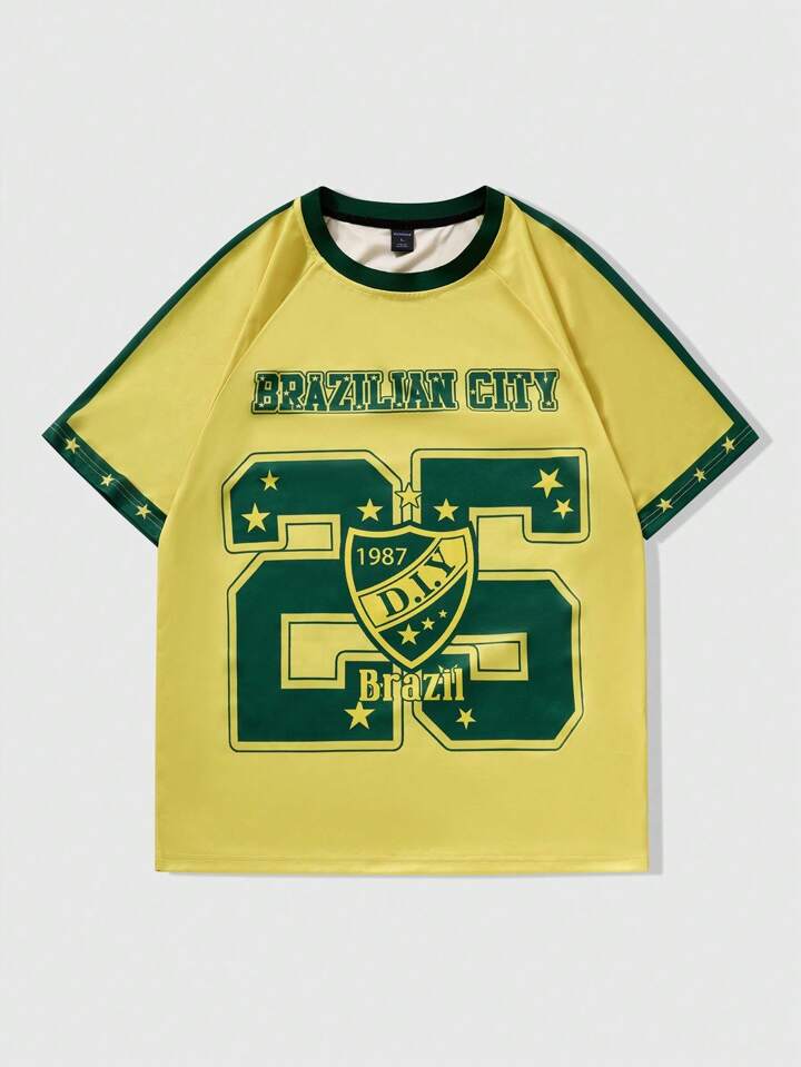 Prep Men's Jersey Brazil Soccer Letter Graphic Short Sleeve Athletic T-Shirt