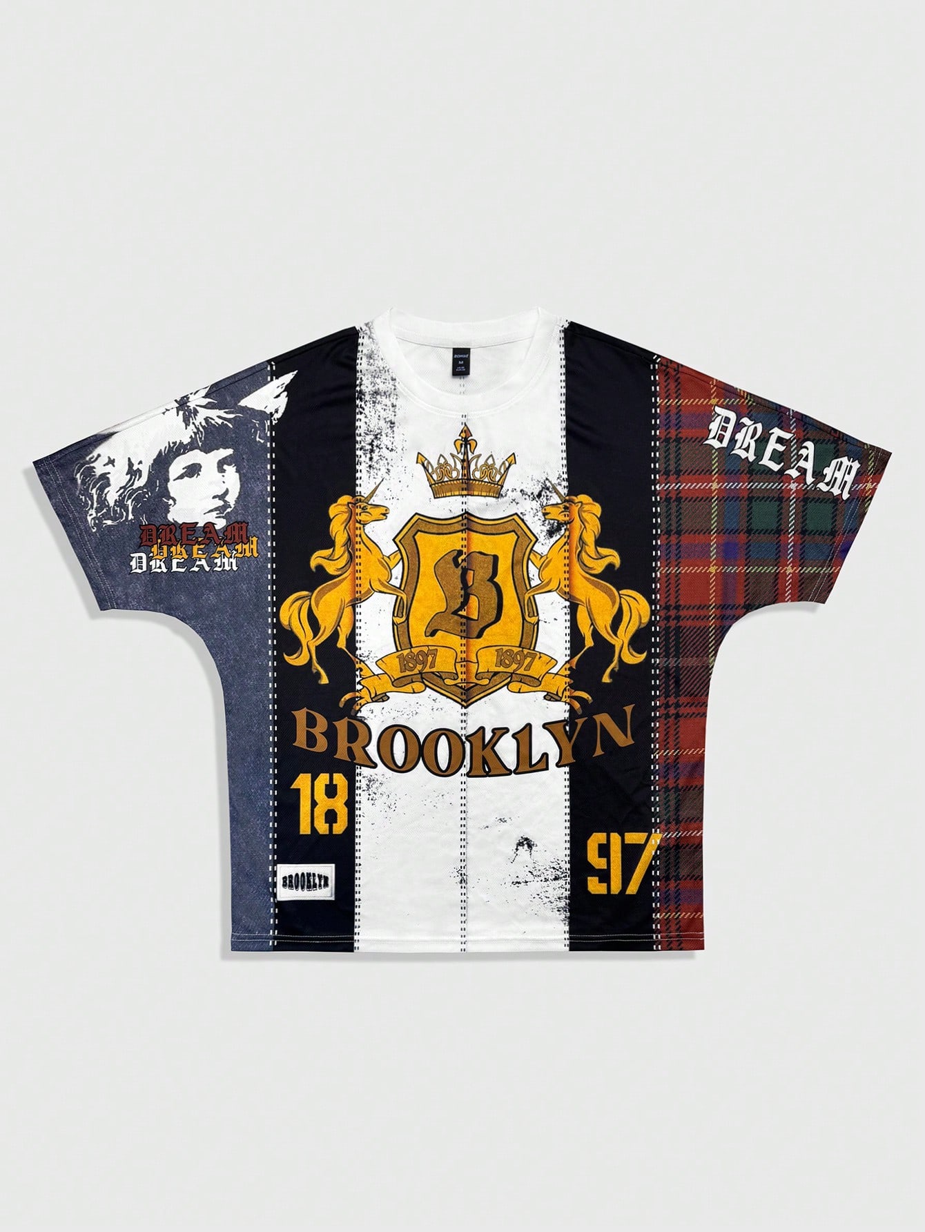 Prep Men's Jersey Casual Colorblock Plaid Printed Short Sleeve T-Shirt, Summer