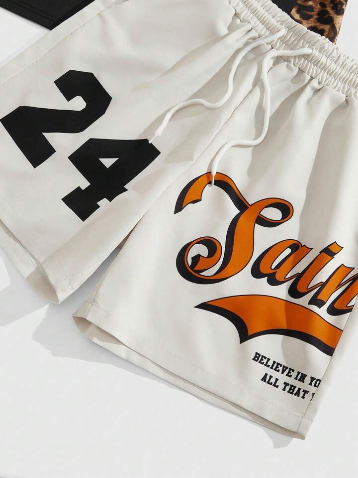 Prep Men's Jersey Casual Letter & Leopard Printed Daily Wear Short Sleeve Outfit