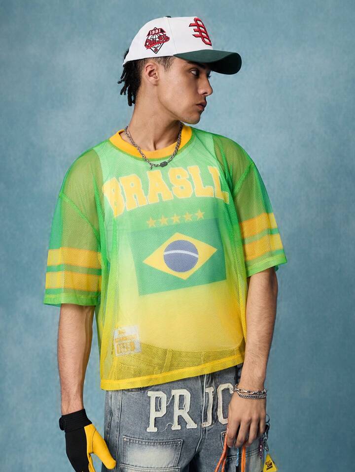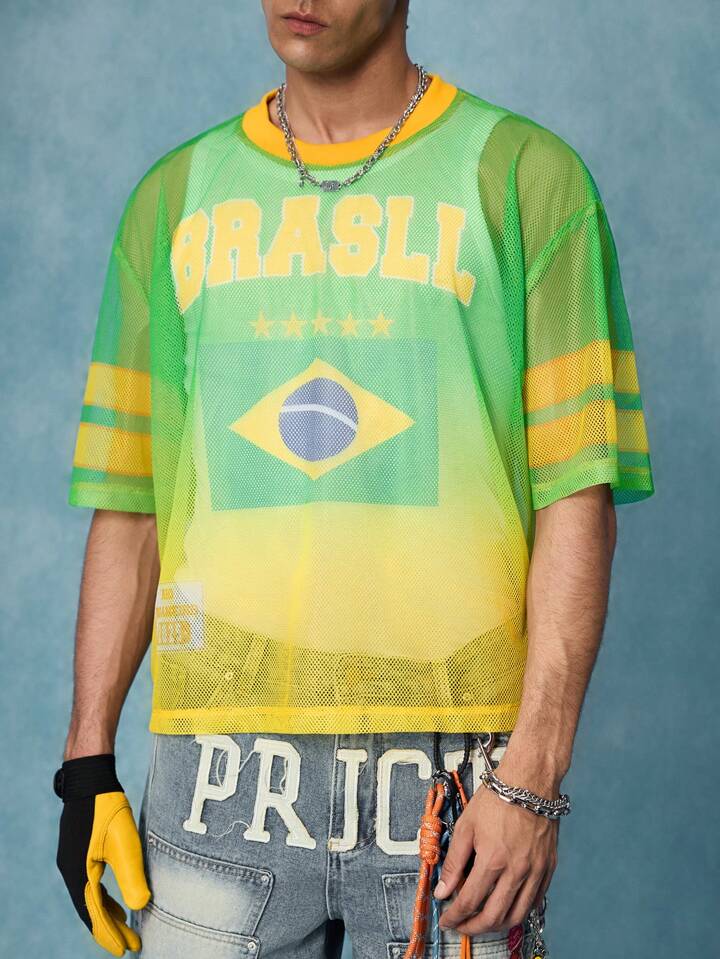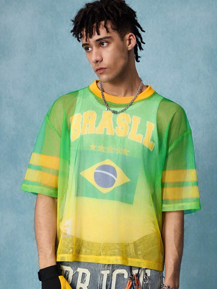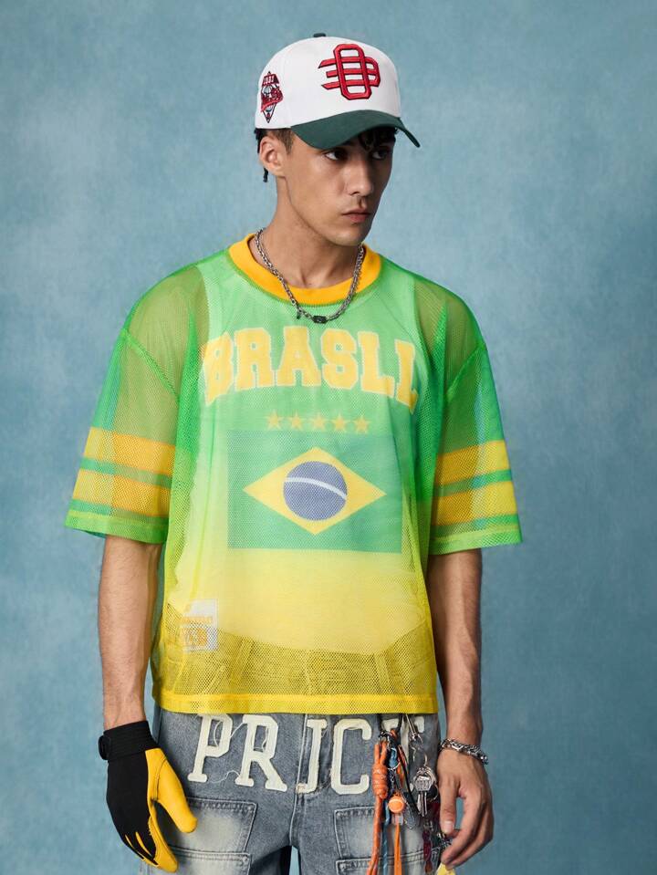 Prep Men's Jersey Casual Letter Print Round Neck Short Sleeve T-Shirt, Summer Vacation