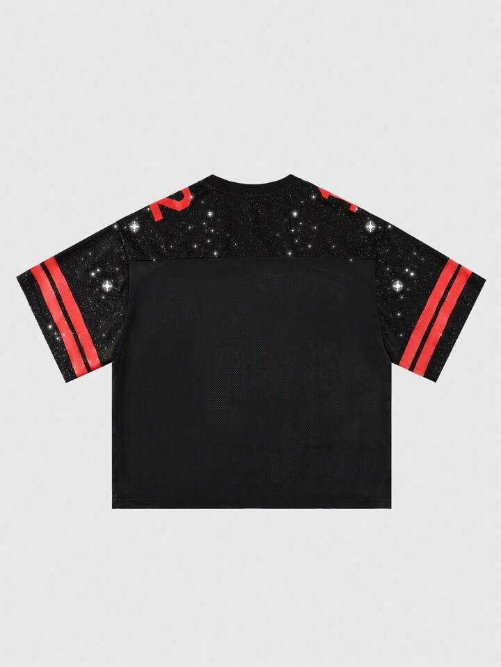 Prep Men's Jersey Shiny Fabric Mesh Patchwork Short Sleeve Sports T-Shirt