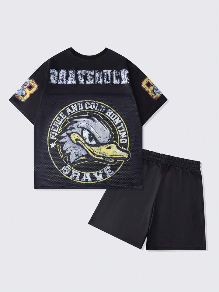 Prep Men's Jersey Shiny Fabric Splice Mesh Sports Short Sleeve Tracksuit