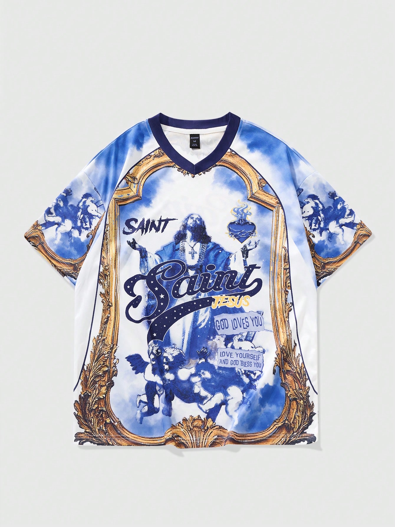 Prep Men's Jersey Slogan Graphic Short Sleeve T-Shirt, Suitable For Everyday Wear, Spring/Summer