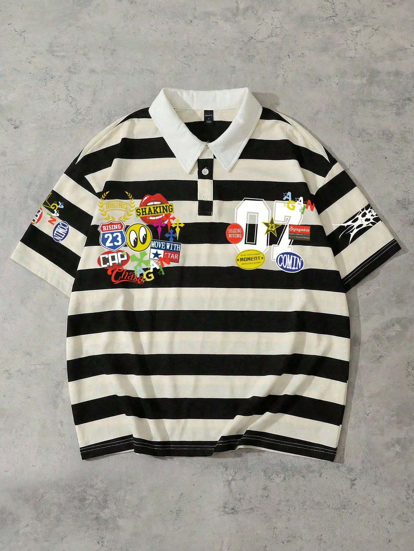 Prep Men's Letter & Striped Print Short Sleeve Polo Shirt, Loose Fit