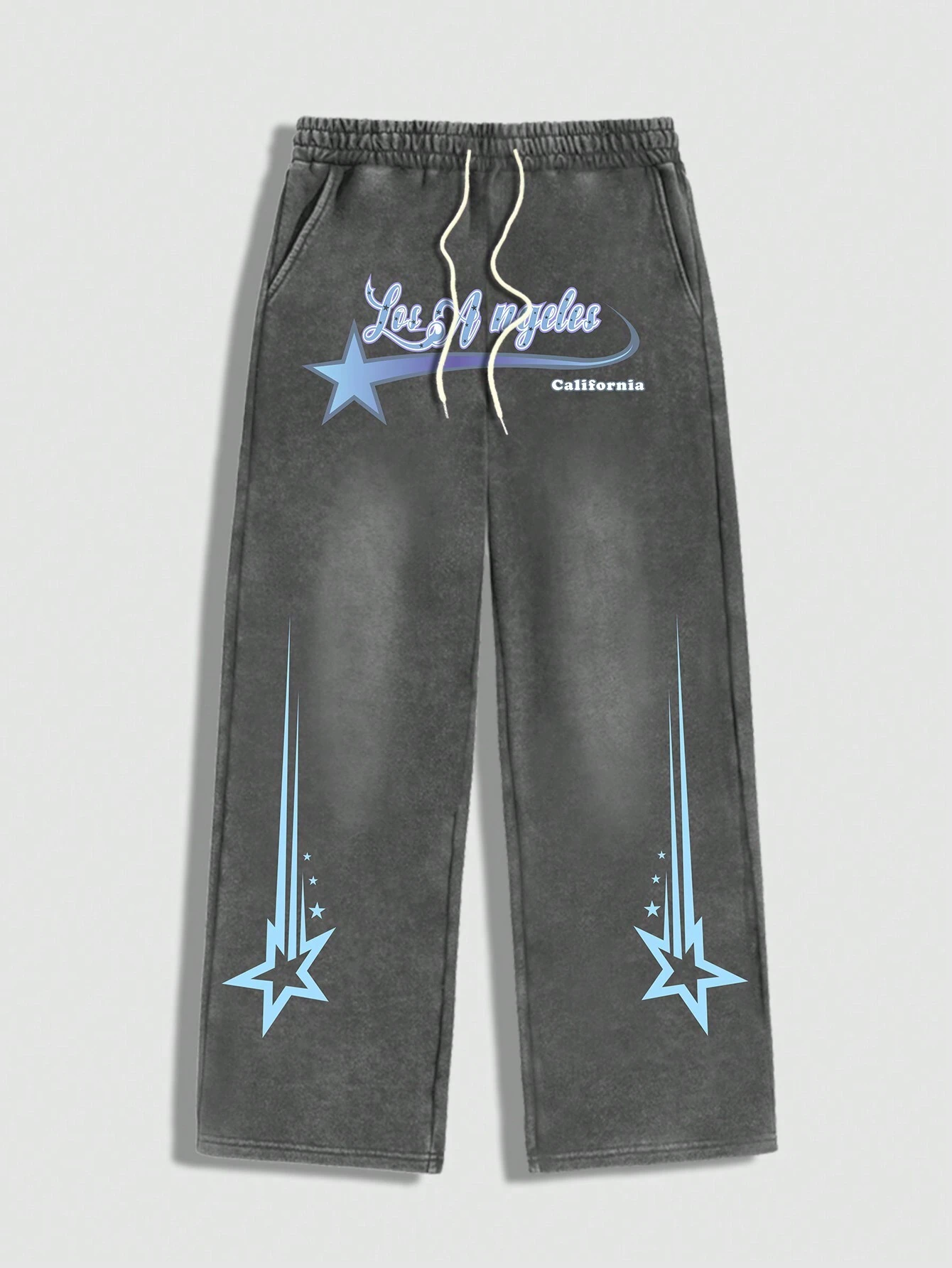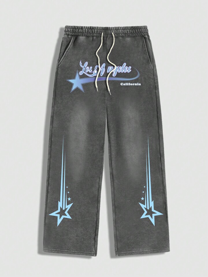Prep Men's Loose Fit Letter & Pentagram Printed Drawstring Waist Pockets Sweatpants
