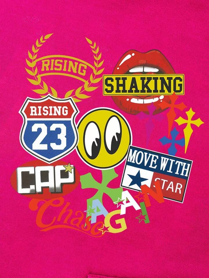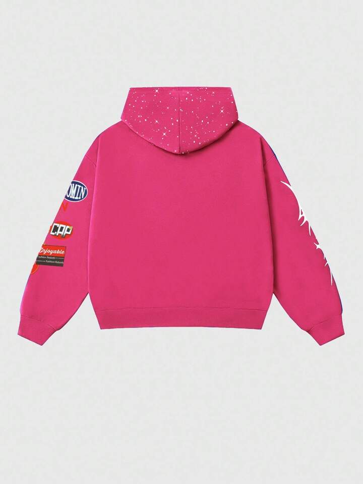 Prep Men's Loose Short Sweatshirt With Shiny Sequin Decor, Streetwear, Fall