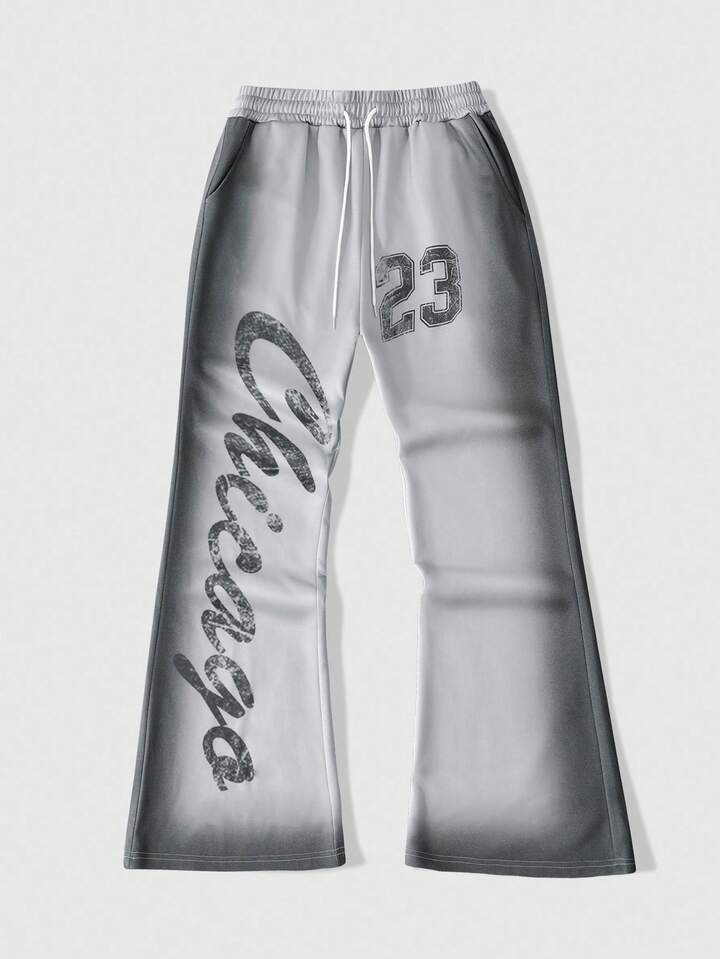 Prep Men's Ombre Letter & Number Print Drawstring Waist Wide Leg Sweatpants