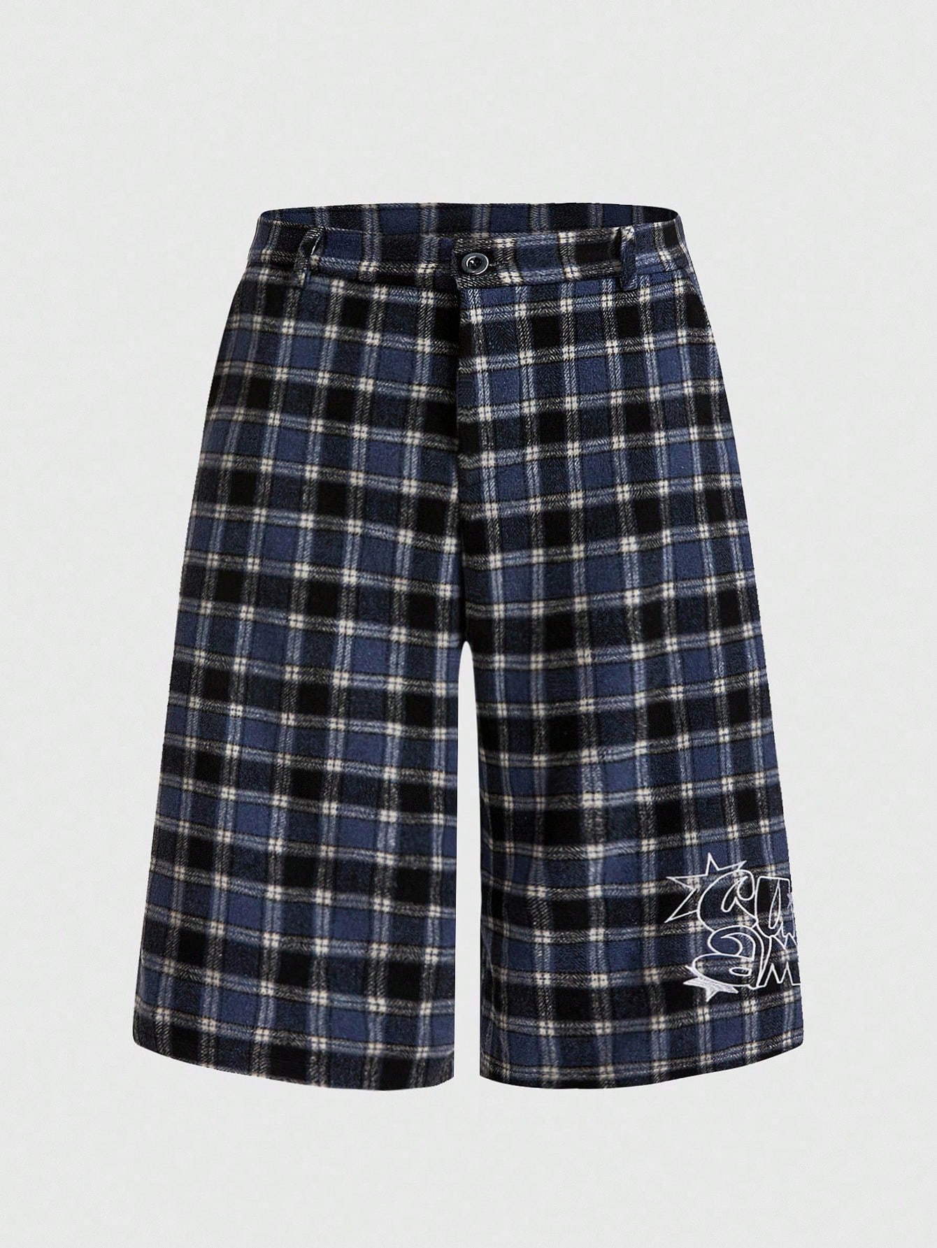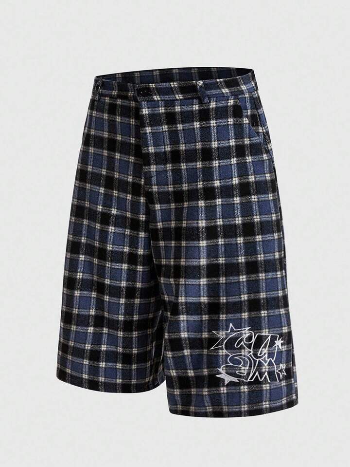 Prep Men's Plaid Embroidered Casual Knee-Length Shorts