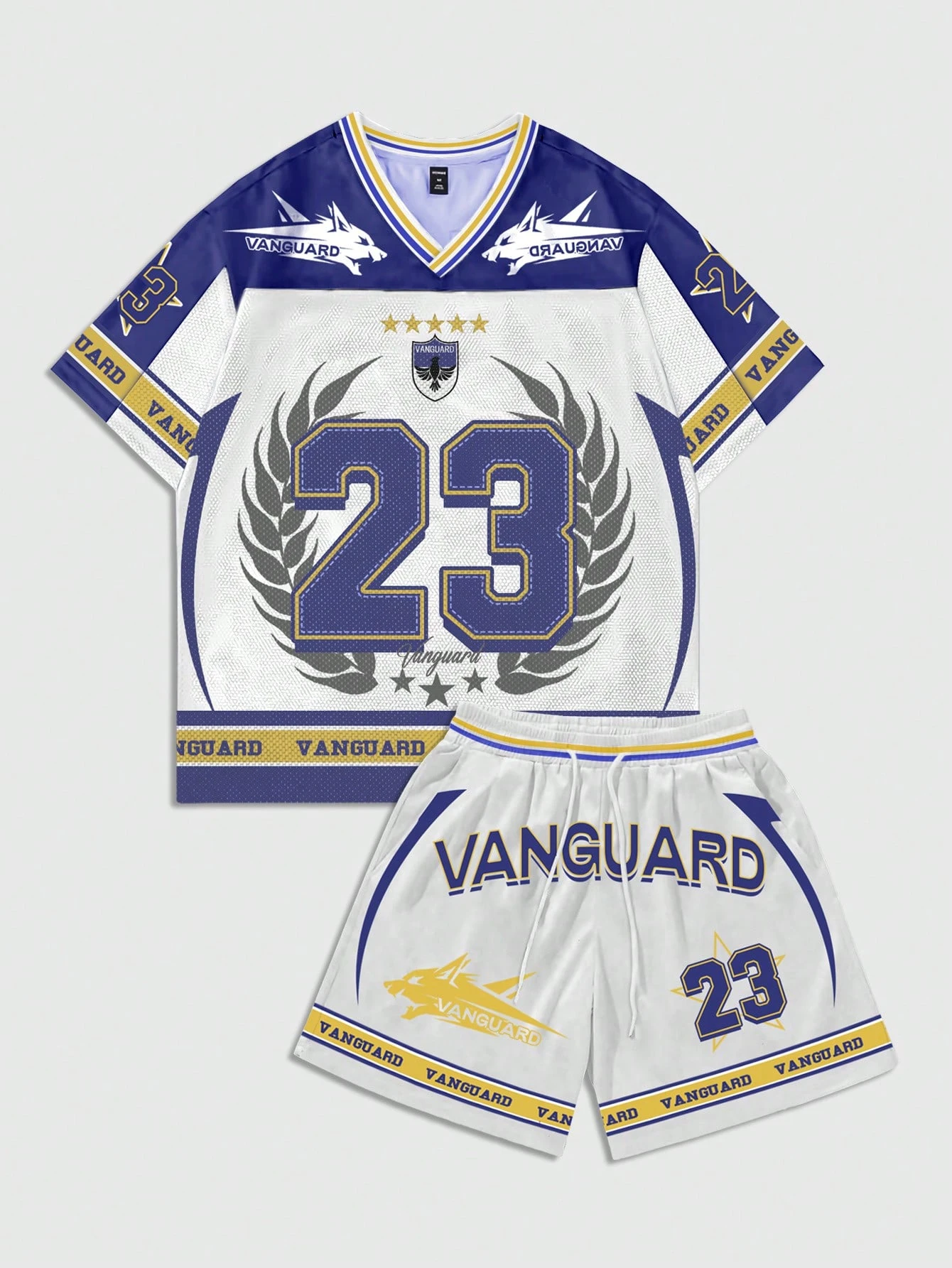 Men's Preppy Mesh Insert Athletic Short Sleeve T-Shirt Set, Sports Jersey