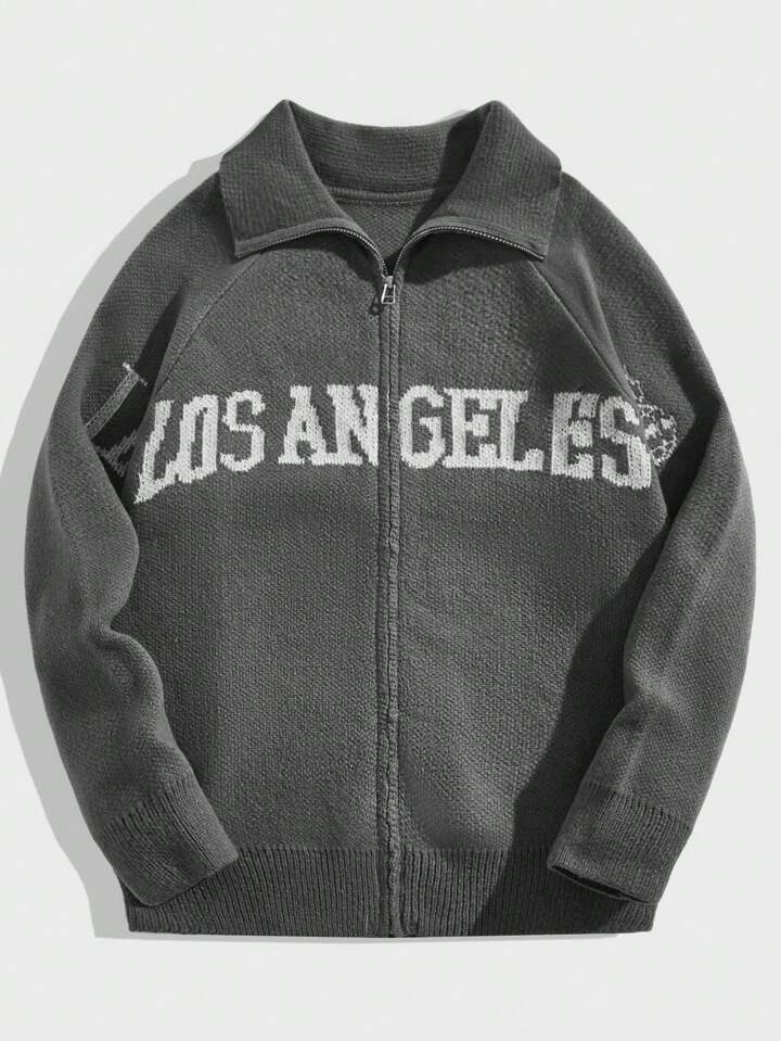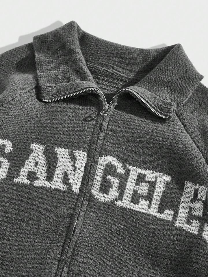 Prep Men's Raglan Long Sleeve Cardigan With Letter Print