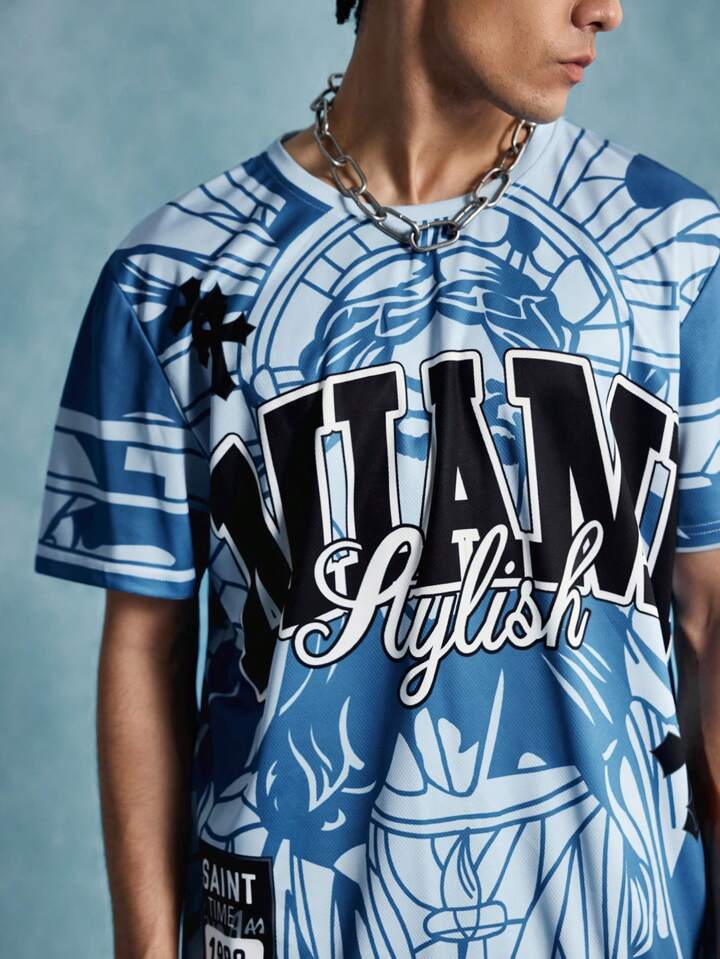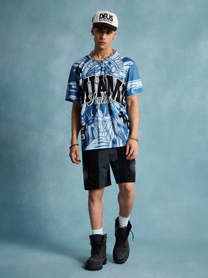 Prep Men's Round Neck Slogan Printed Casual Short Sleeve T-Shirt