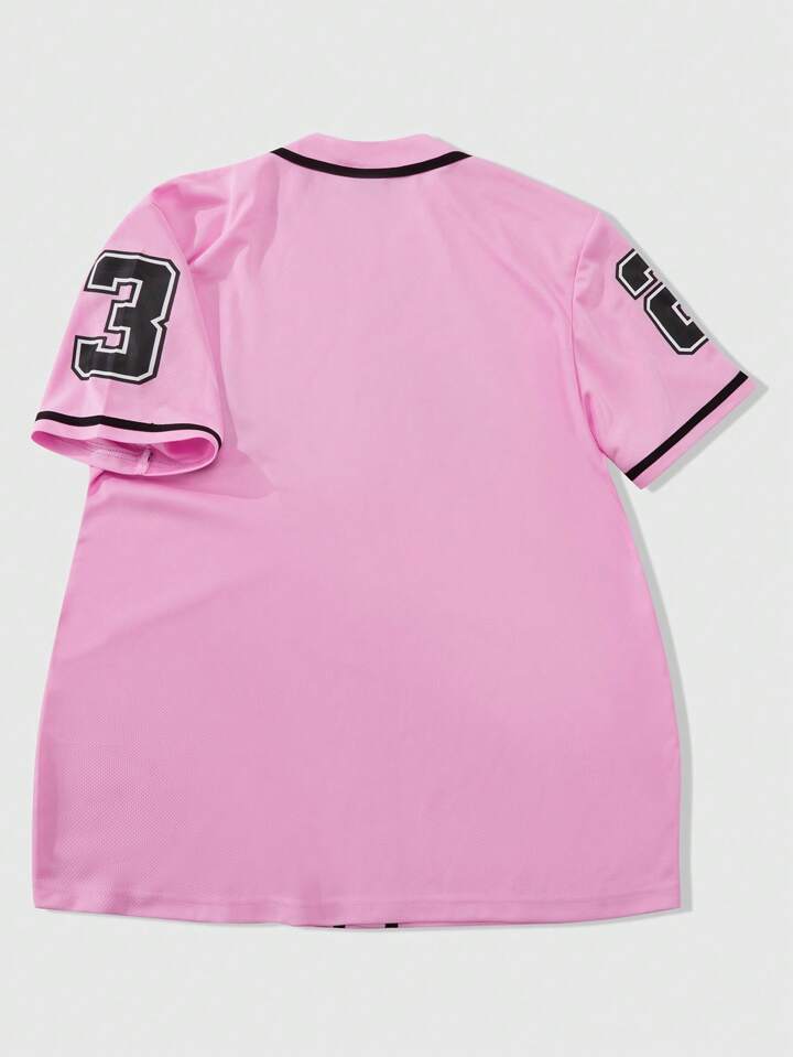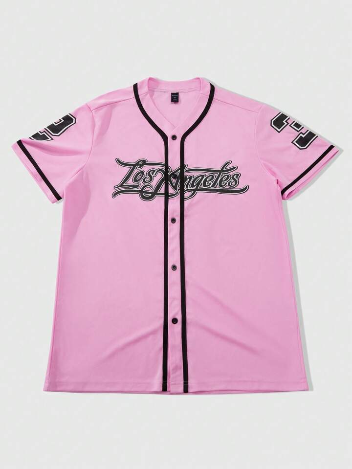 Prep Men's Short Sleeve Street Style American Casual Baseball Jacket Cardigan Shirt With English Number Graphic Print