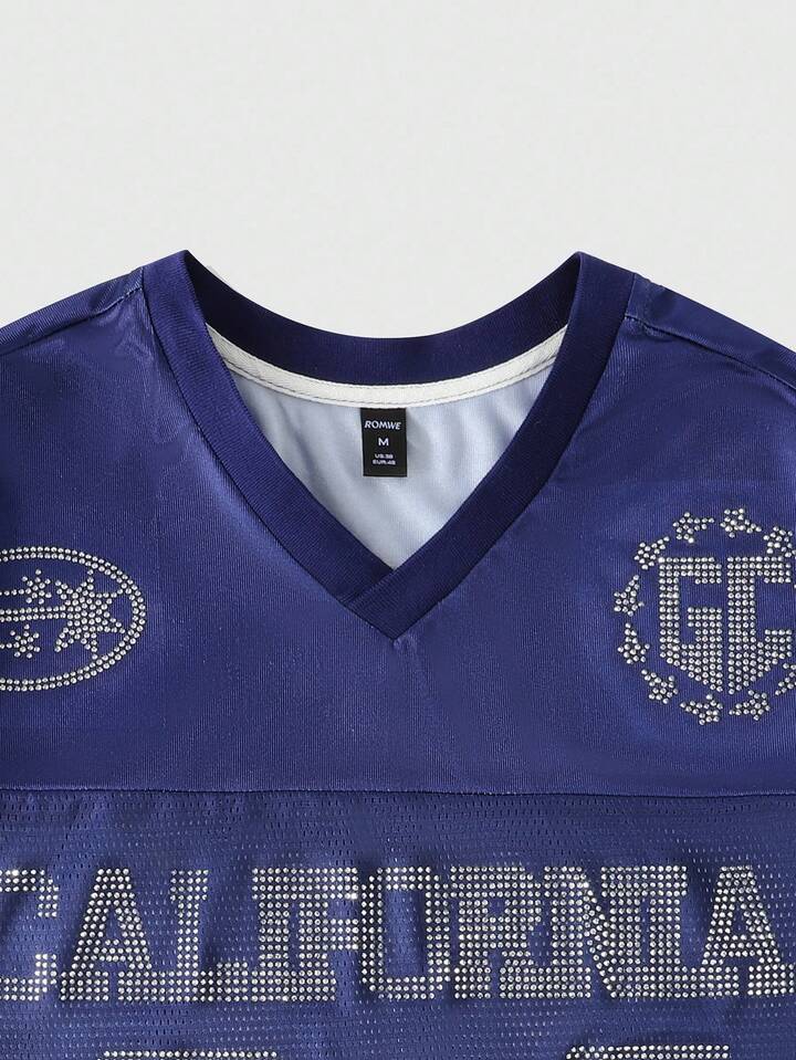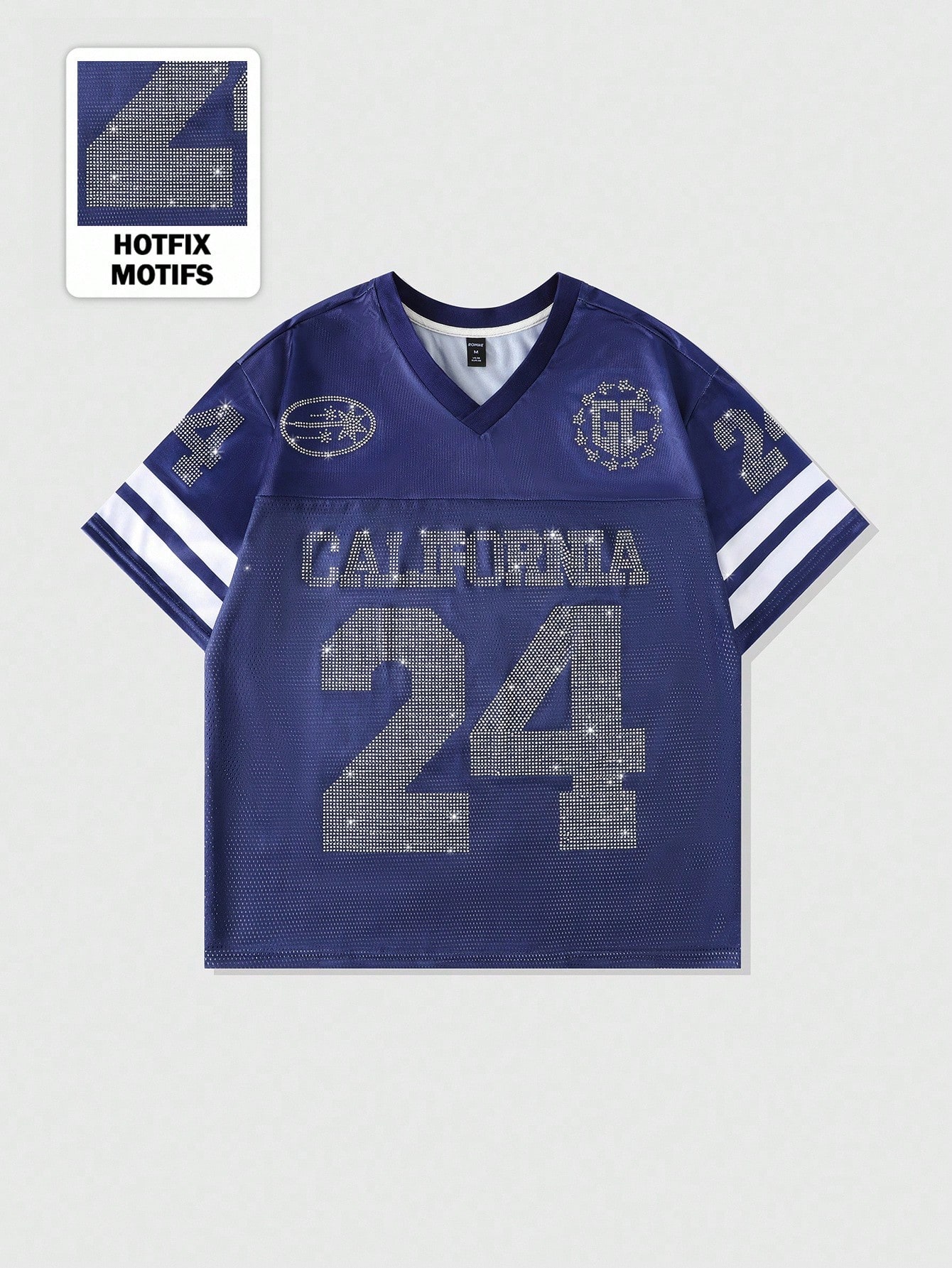 Prep Men's Sparkling Diamond Mesh Patchwork Short Sleeve Sports T-Shirt Jersey