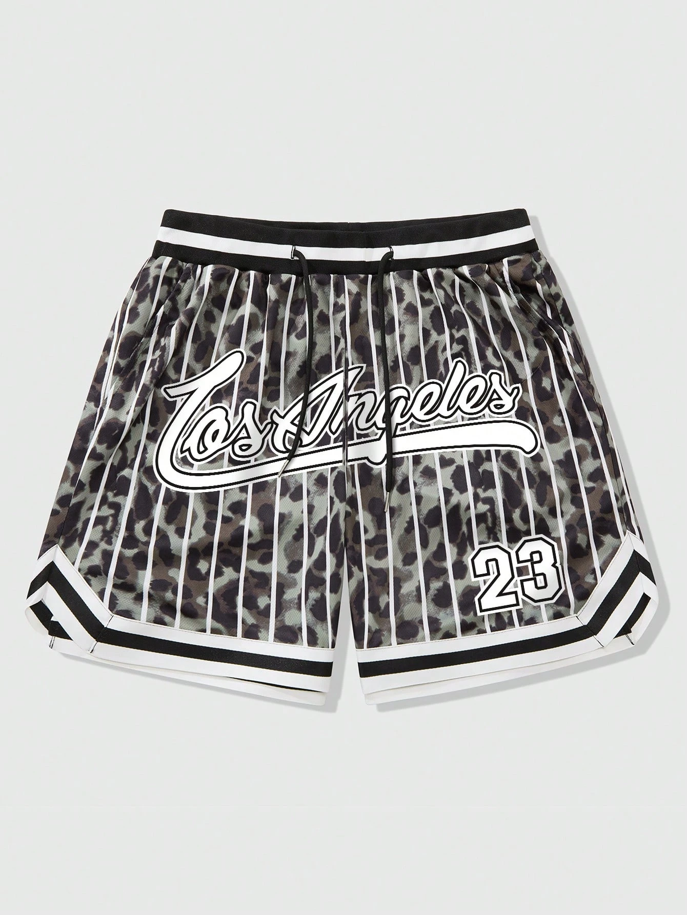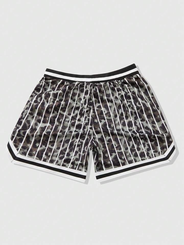 Prep Men's Street American Style Sports Striped Leopard Print English Letter Graphic Shorts