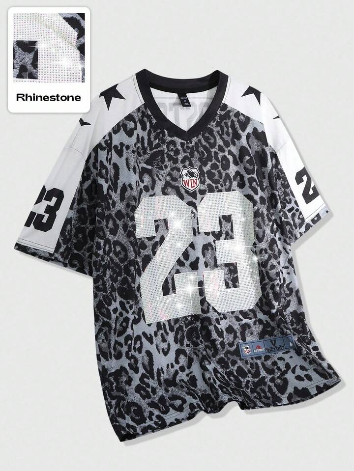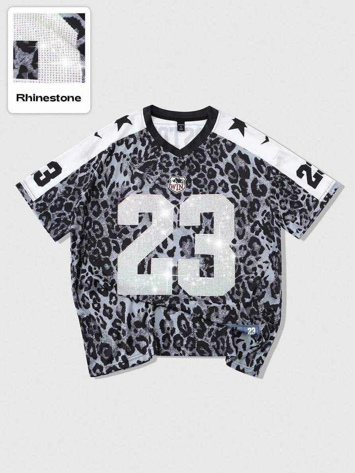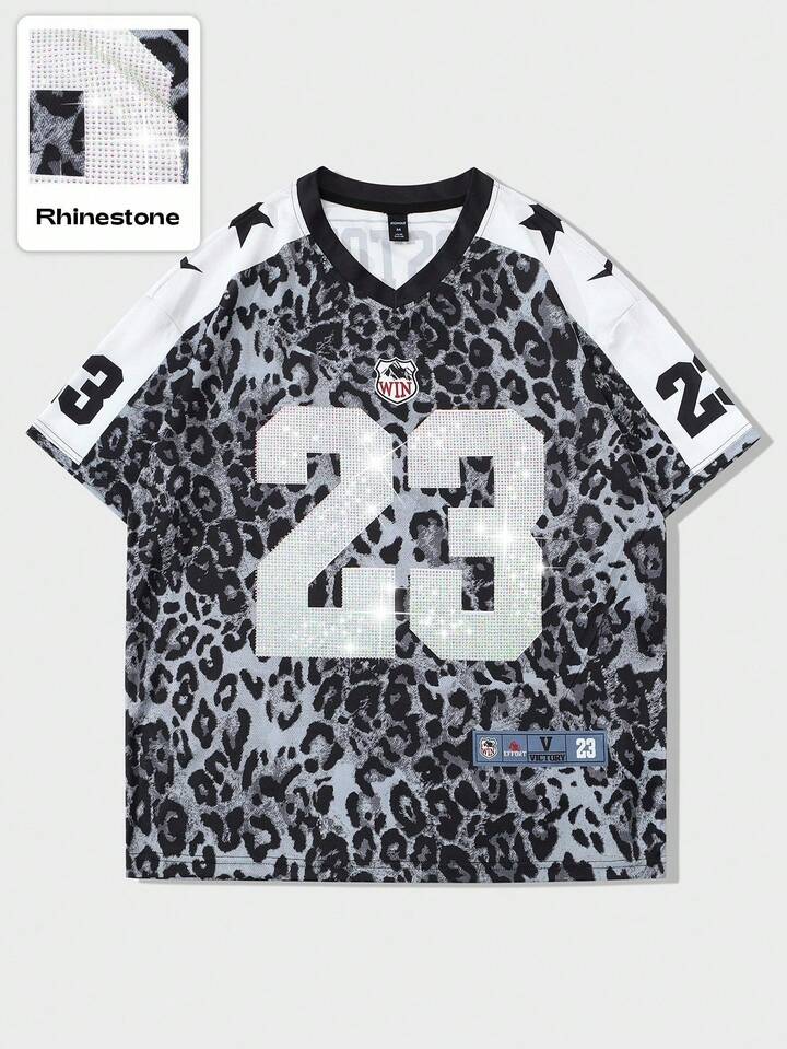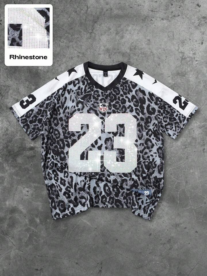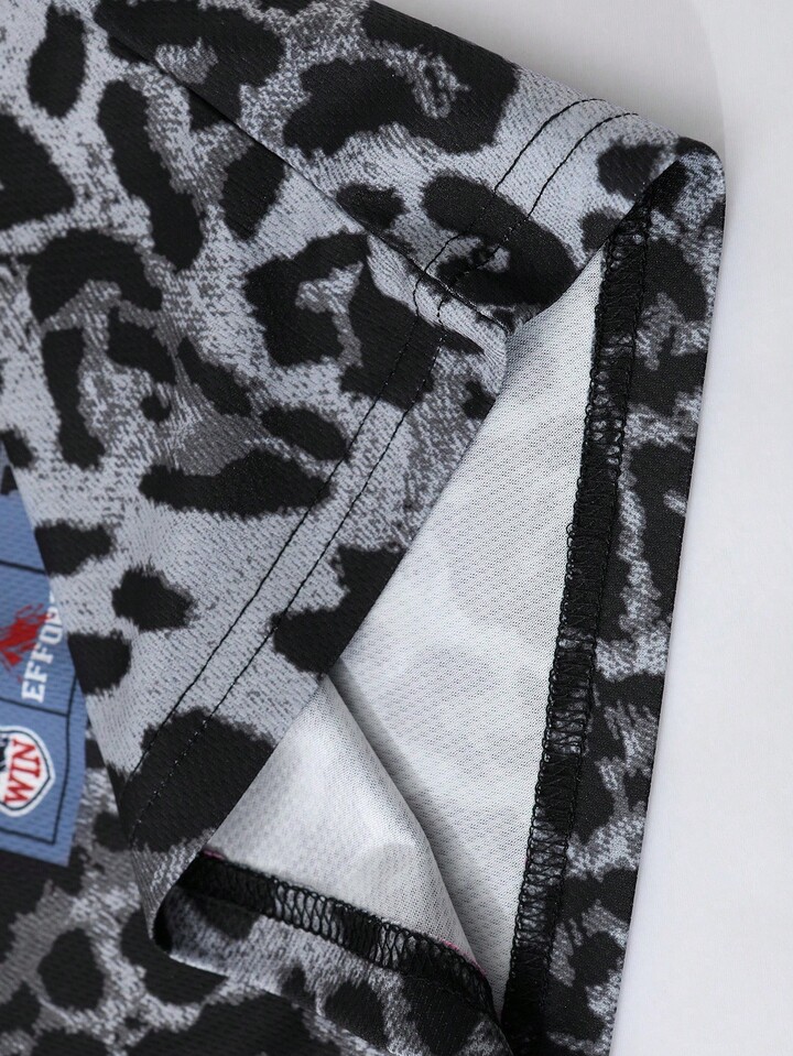 Prep Men's Street Hip Hop American City Name Slogan Print Vintage Animal Pattern Leopard Print Background Sports Short Sleeve T-Shirt, Suitable For Everyday Wear In Spring/Summer