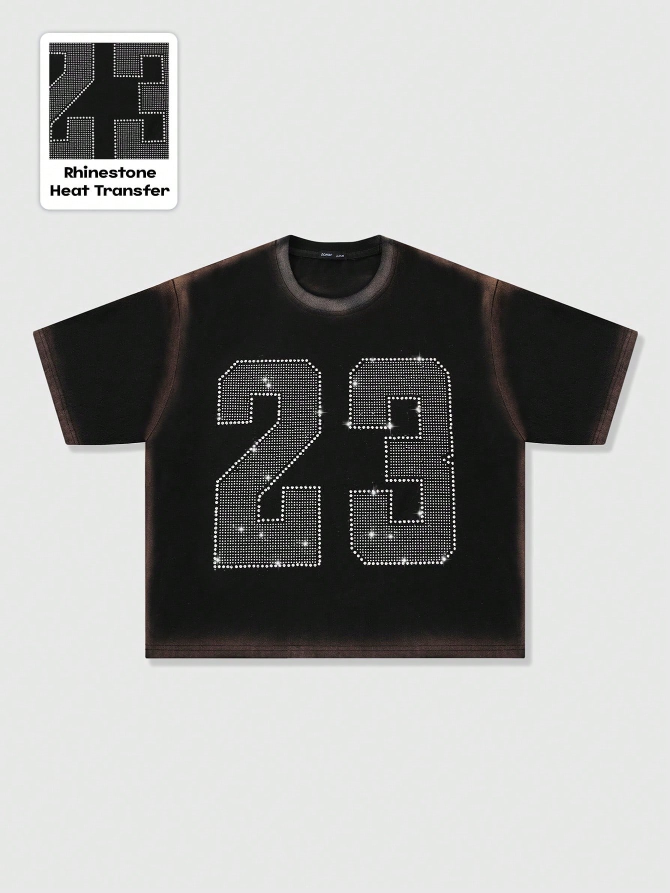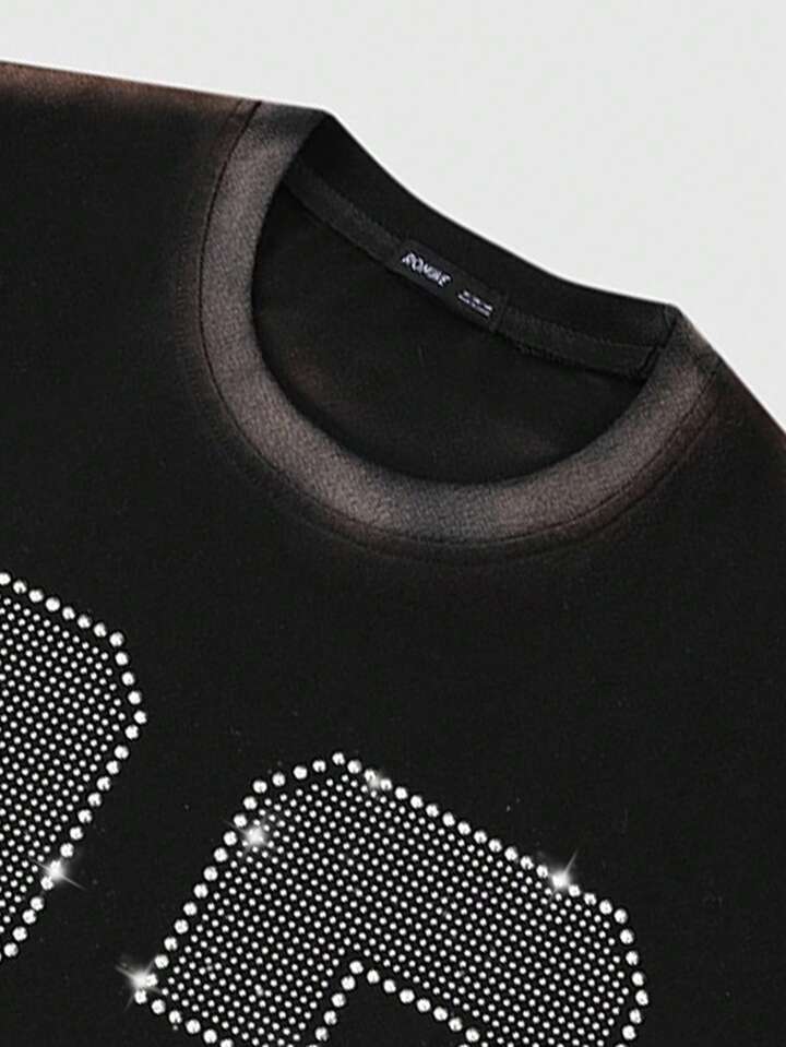 Prep Men's Street Life Glitter Diamond Trim Spray Printed Short Sleeve T-Shirt, Loose Cropped Style
