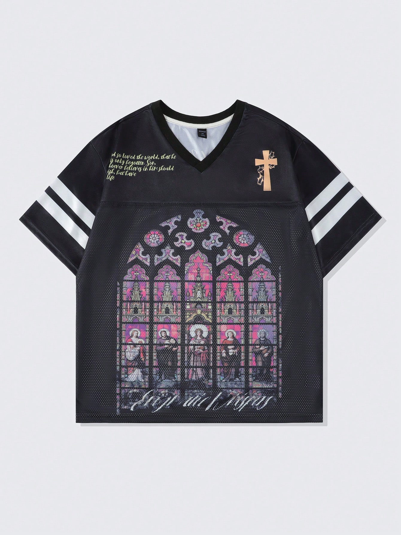 Prep Men's Virgin Mary Jersey Sports T-Shirt, Short Sleeve, Summer, With Mesh Fabric Patchwork