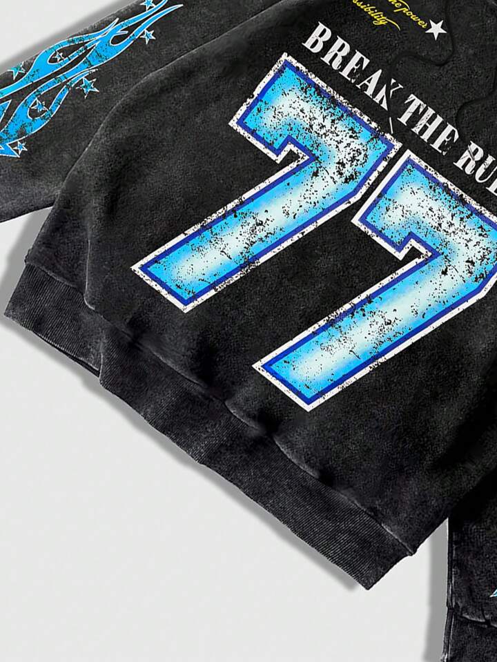 Prep Men's Washed Casual Number & Letter Print Drawstring Hoodie For Autumn, Daily Wear