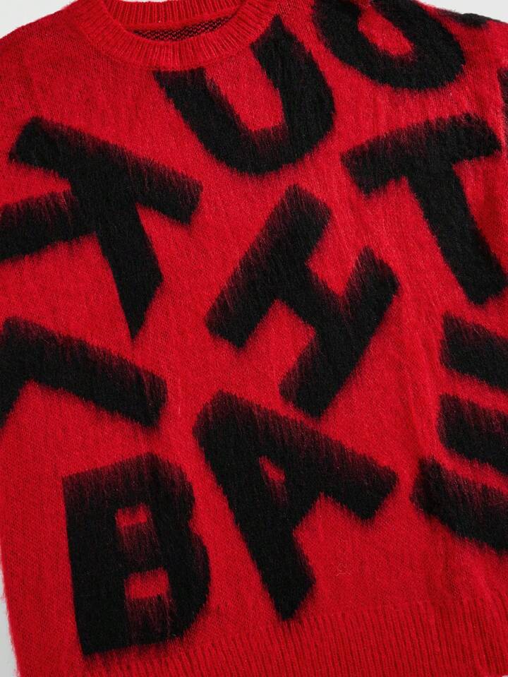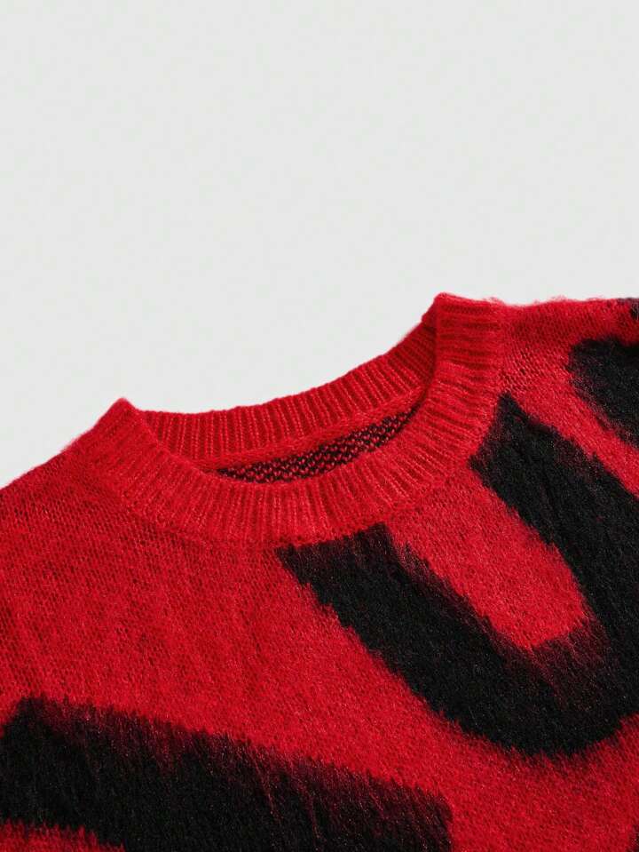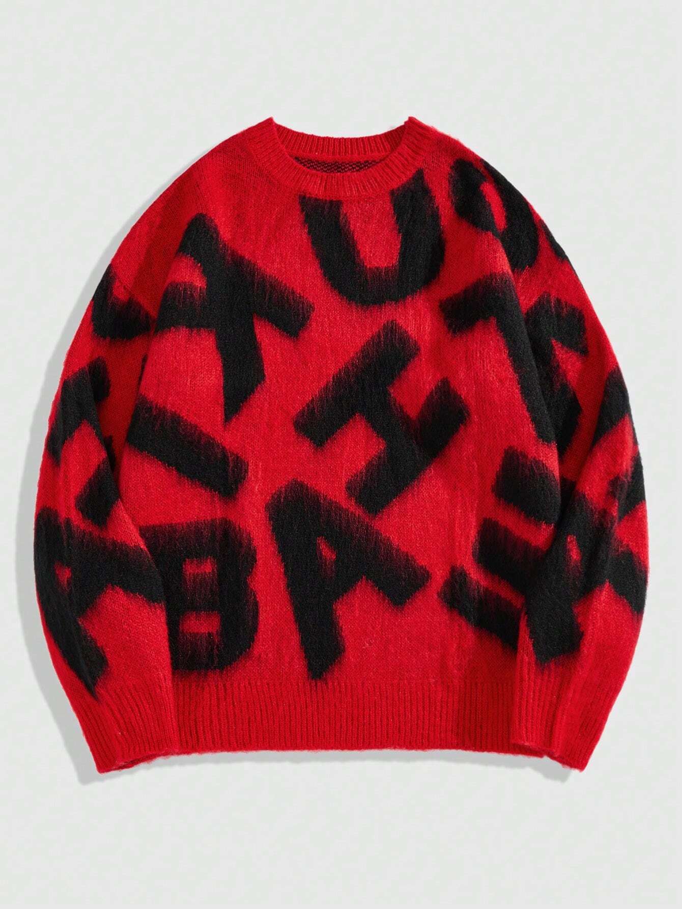 Prep Vintage Streetwear Crew Neck Letter Jacquard Knit Pullover Sweater For Men, Autumn/Winter