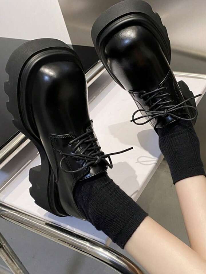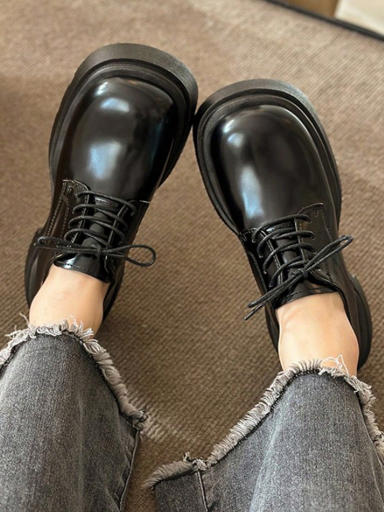 Preppy Oxford Shoes For Women, Lace-up Front Platform Wedges Shoes
