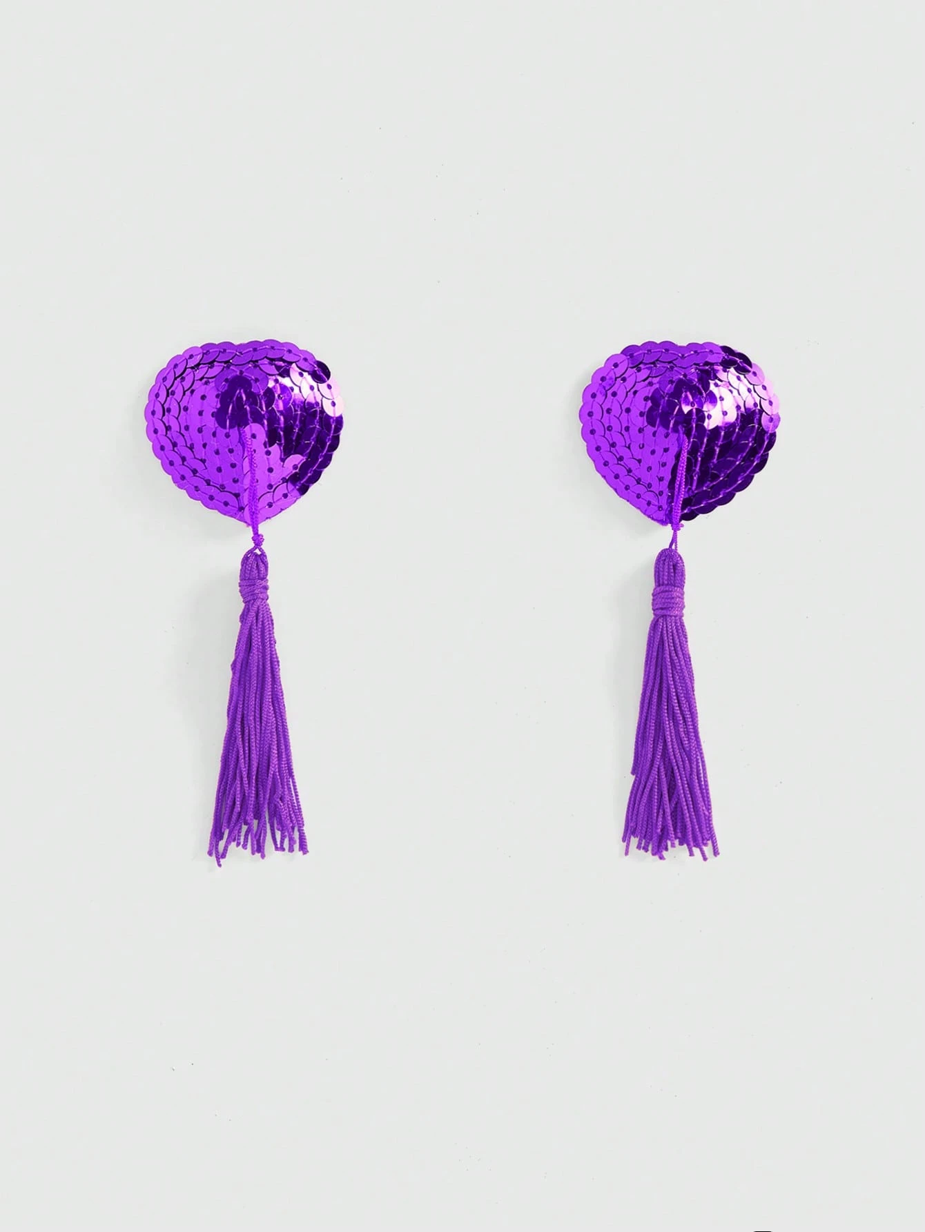 ROMWE Avant 1 Pair Fashionable Sexy Sequin Heart Tassel Nipple Pasties