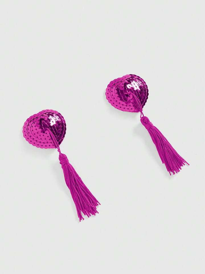 ROMWE Avant 1 Pair Sequin Heart Tassel Nipple Pasties, Suitable For Everyday Wear