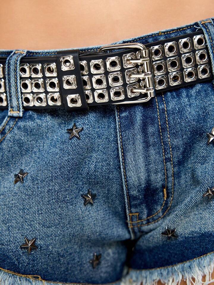 ROMWE Avant 1pc Unisex Metal Square Grommet Decor Belt, Heavy Gothic Dark Style, Versatile For Daily Wear