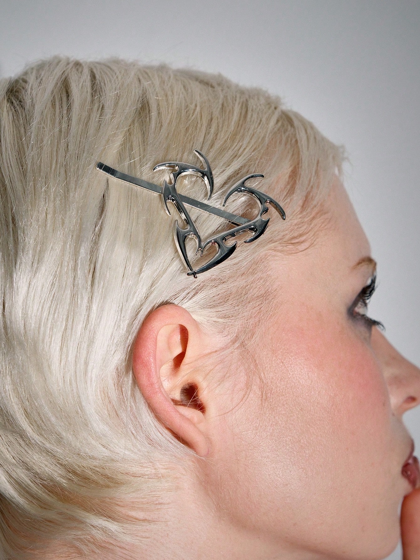 ROMWE Avant 2pcs Silver Heart Shape Hair Clips, Y2K Metal Hairpins, Punk Retro Hair Accessories