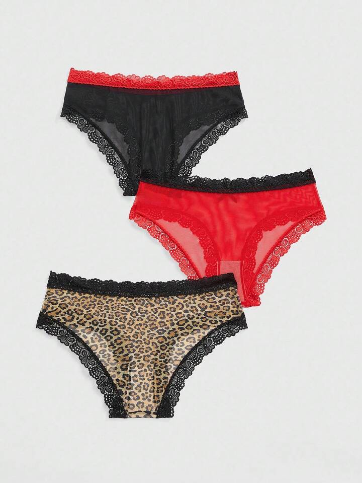 ROMWE Avant 3pcs/Set Fashionable Lace Patchwork Comfortable Sexy Panties