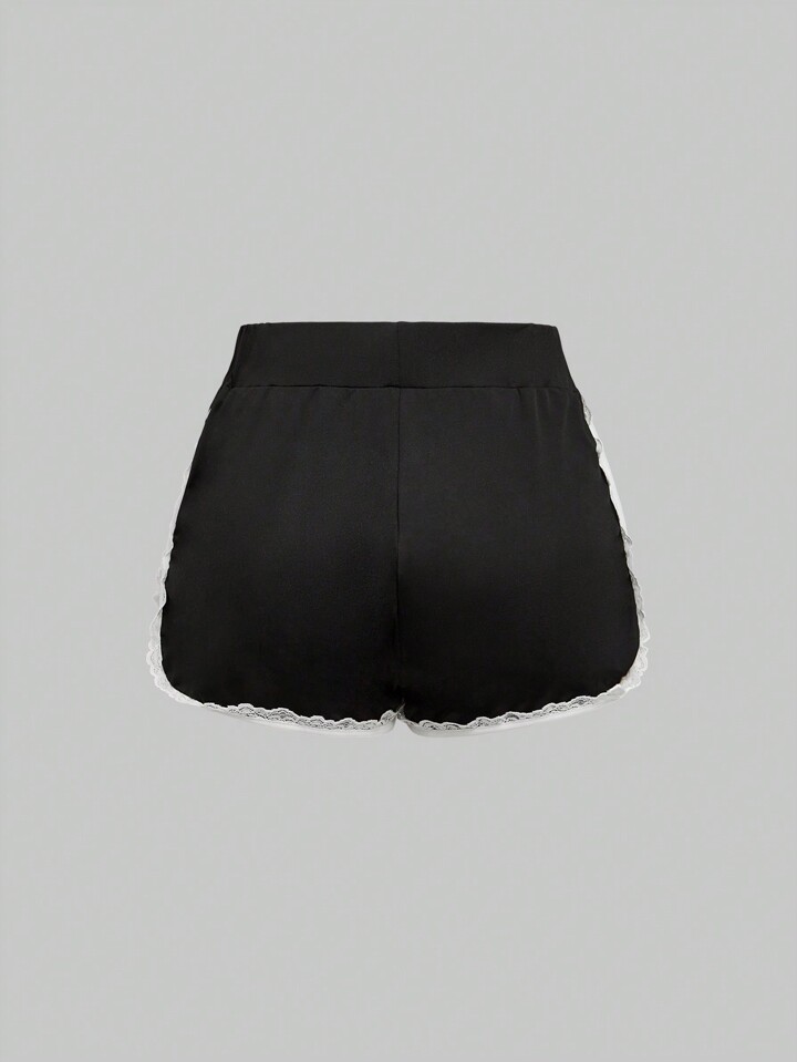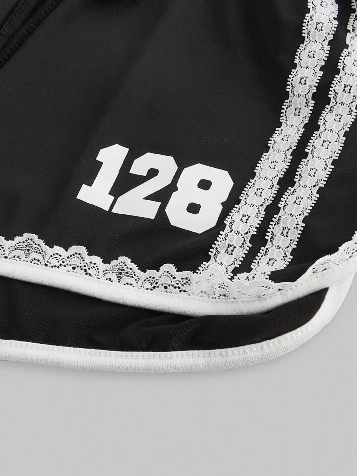 ROMWE Avant Ballet Inspired Lace Patchwork Numeral Print Lounge Shorts