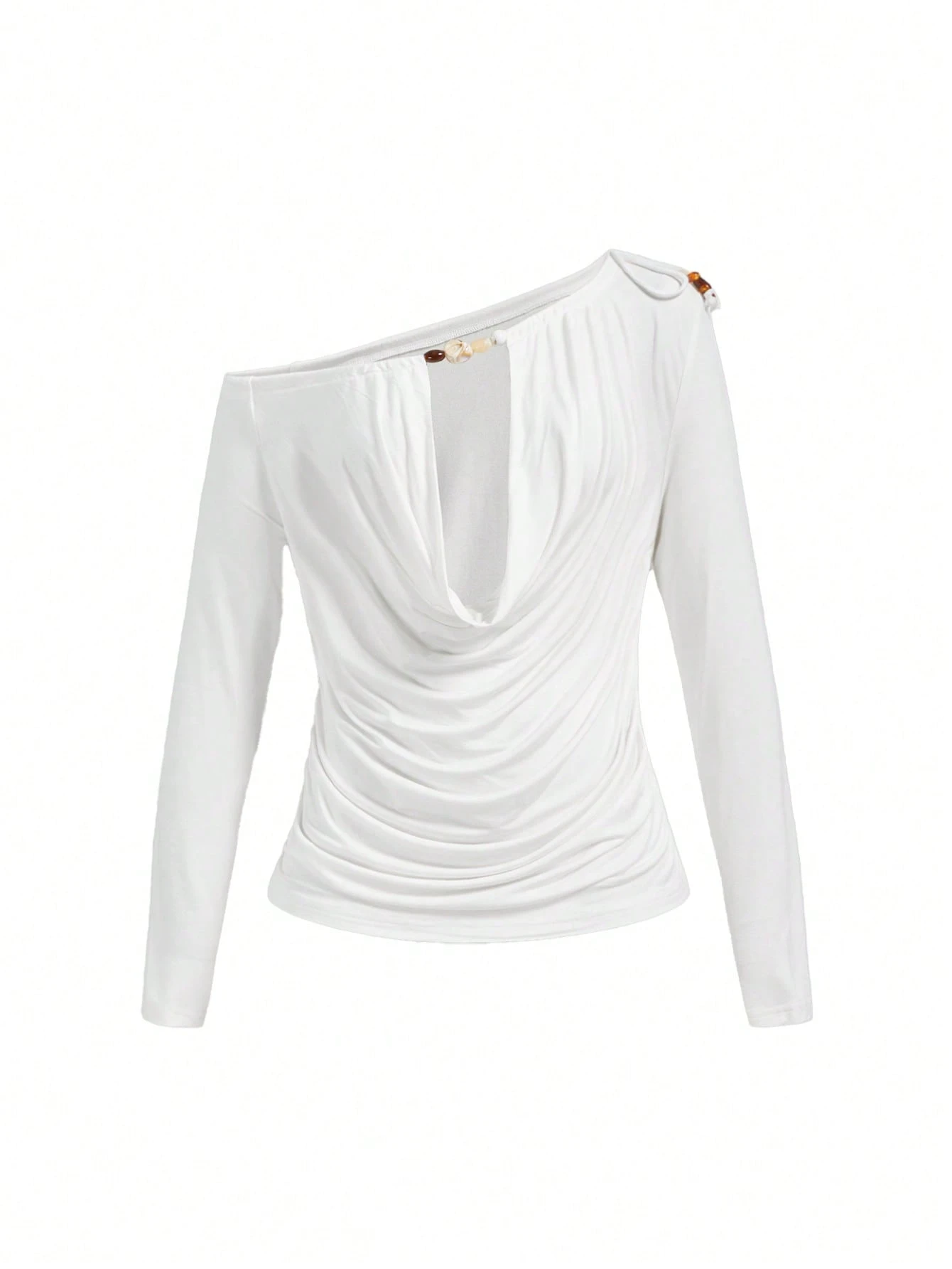 ROMWE Avant Beaded Loose Slouchy Scoop Neck Women Top