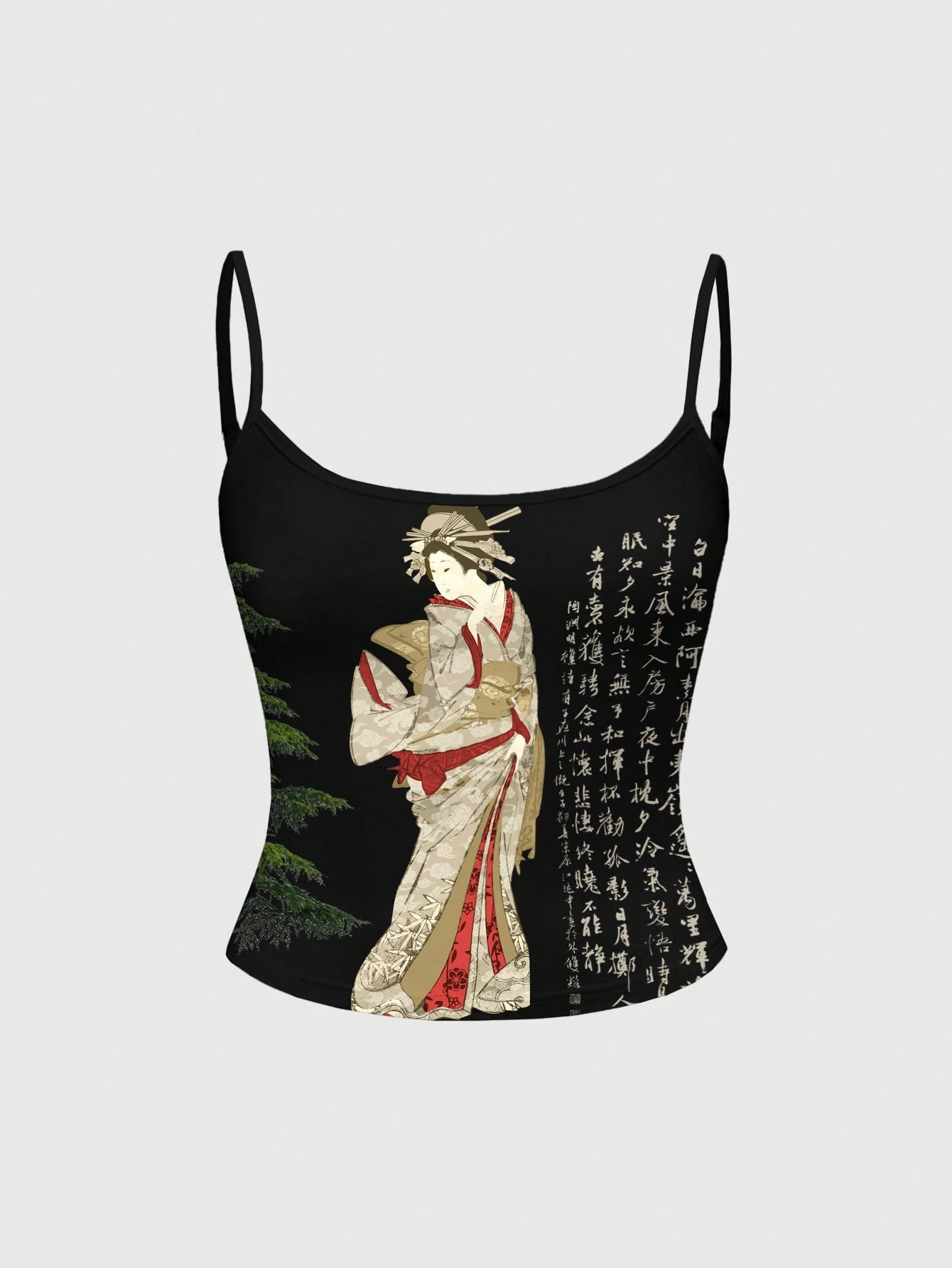 ROMWE Avant Chinese Calligraphy Sexy Punk Lace-Up Low-Cut Backless Tank Top For Women