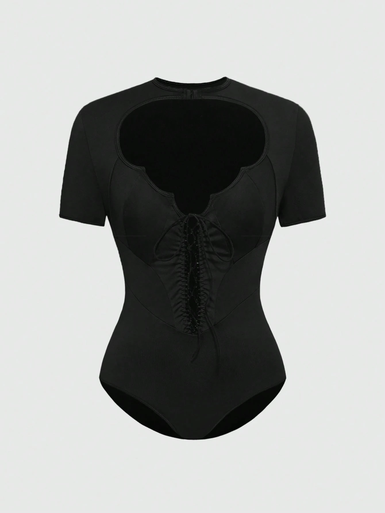 ROMWE Avant Dark Halloween Bat Lace-Up Sexy Bodysuit