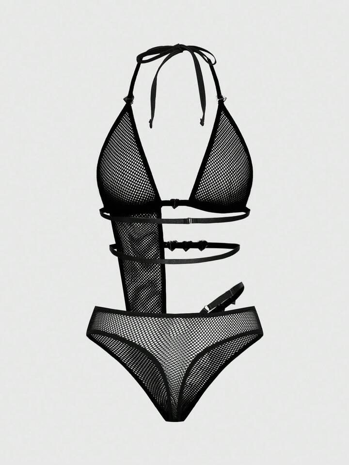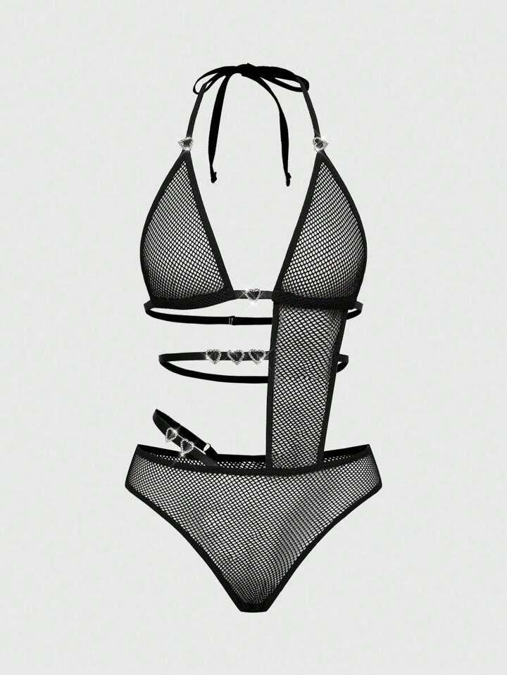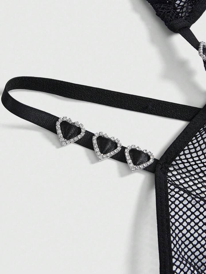 ROMWE Avant Fashionable Grid Heart Hollow Out Metallic Women Sexy Bodysuits