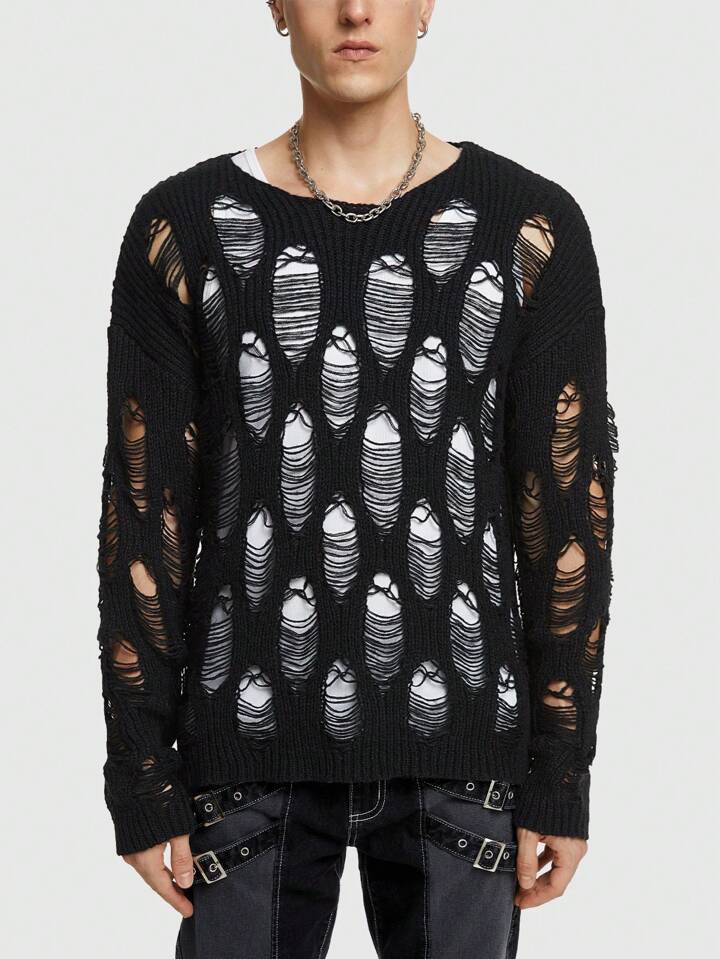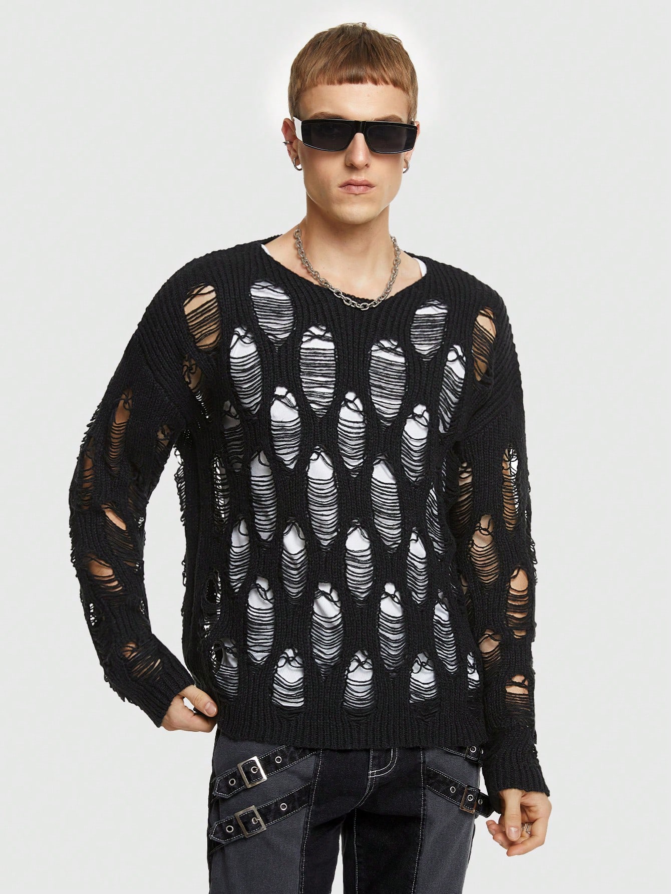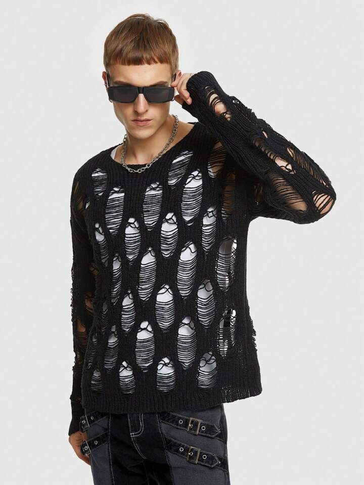 ROMWE Avant Guys Distressed Drop Shoulder Sweater