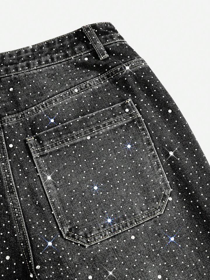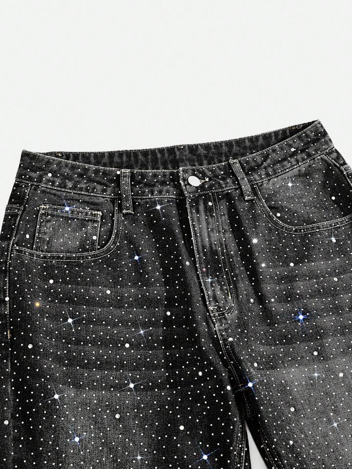 ROMWE Avant Men's Avant Sparkling Diamond Rhinestone Layered Flare Leg Jeans