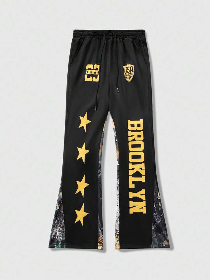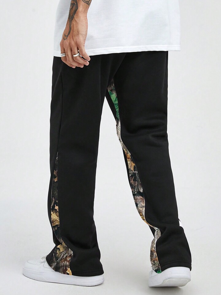ROMWE Avant Men's Camo Printed Color Block Flared Sweatpants, Suitable For Spring & Summer