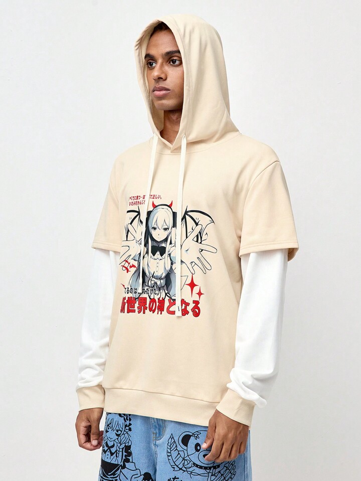 ROMWE Avant Men's Casual Colorblock Cartoon Character Printed Hoodie, School