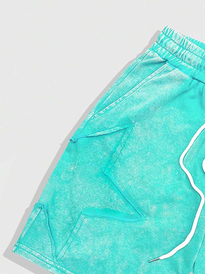 ROMWE Avant Men's Pentagram Patch Drawstring Waist Pockets Loose Shorts