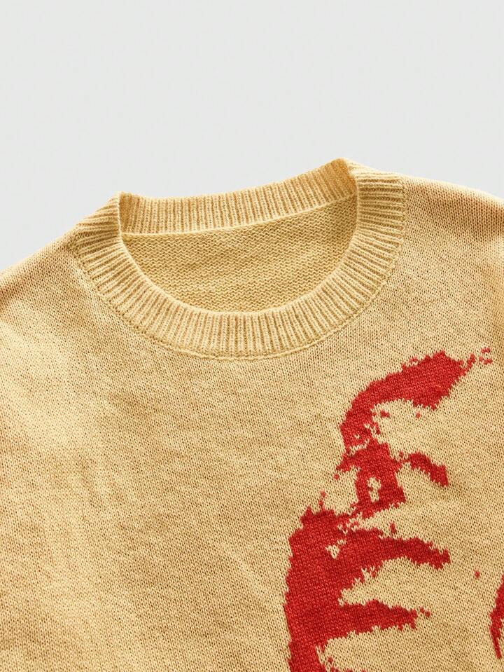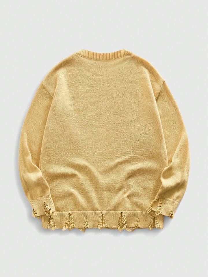 ROMWE Avant Men's Punk Crew Neck Distressed Portrait Graphic Sweater
