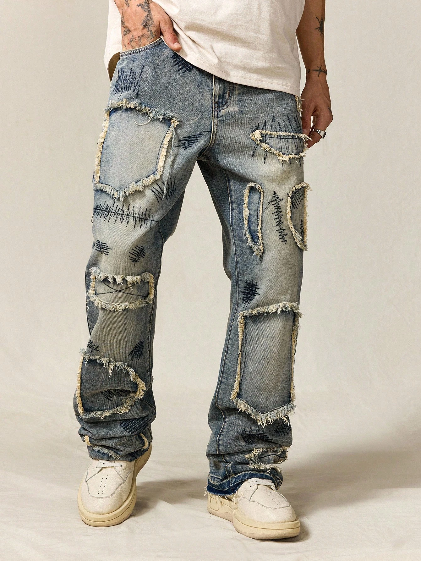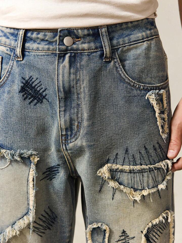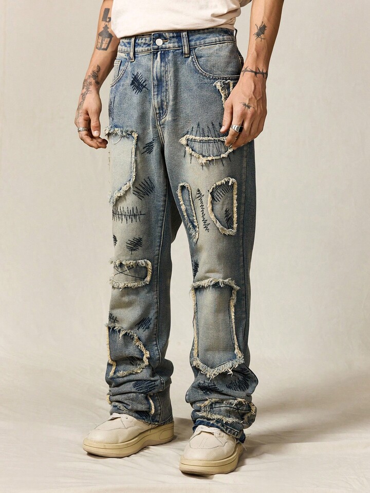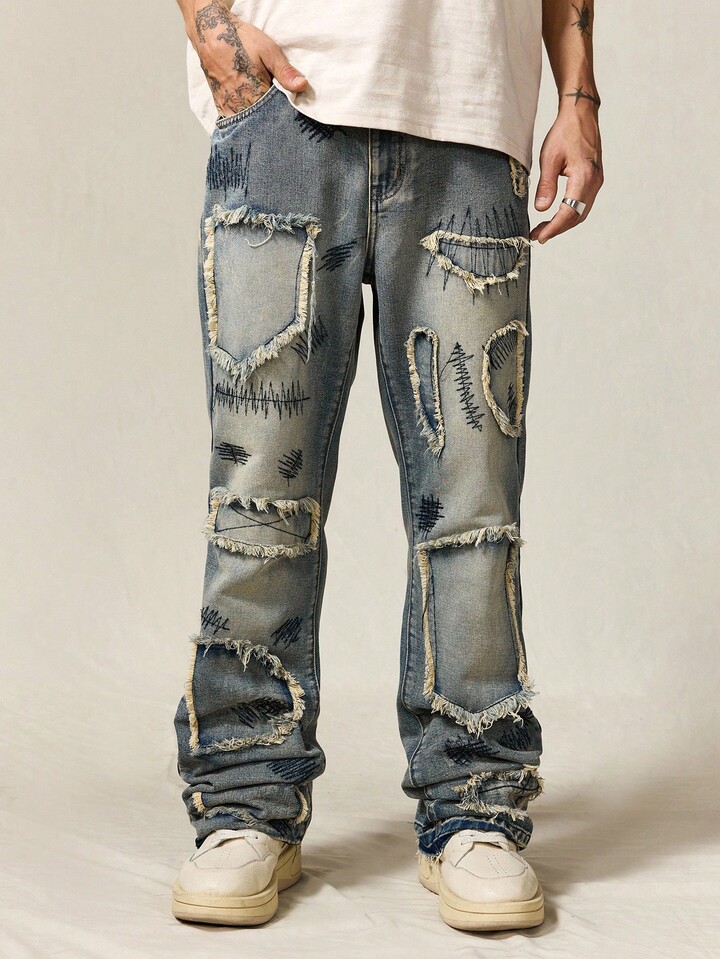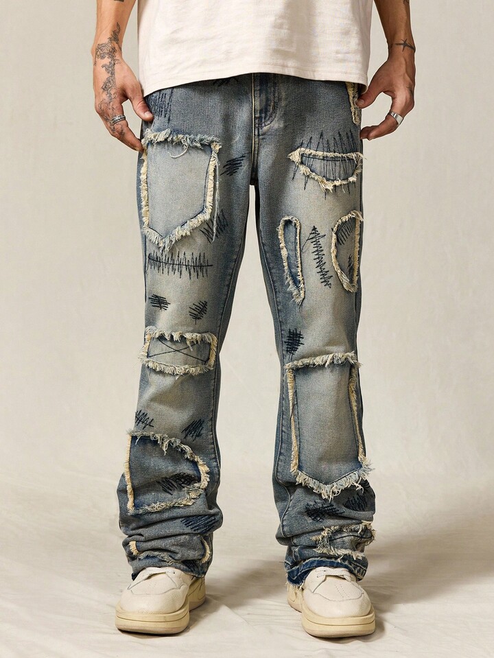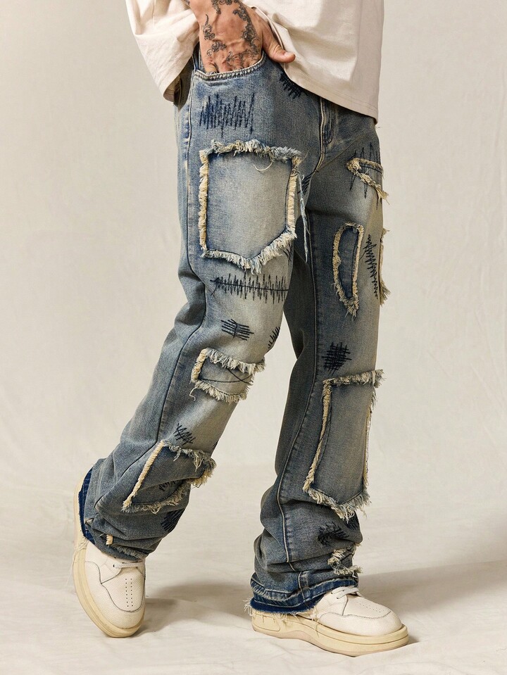 ROMWE Avant Men's Sparkling Diamond Layered Flare Jeans