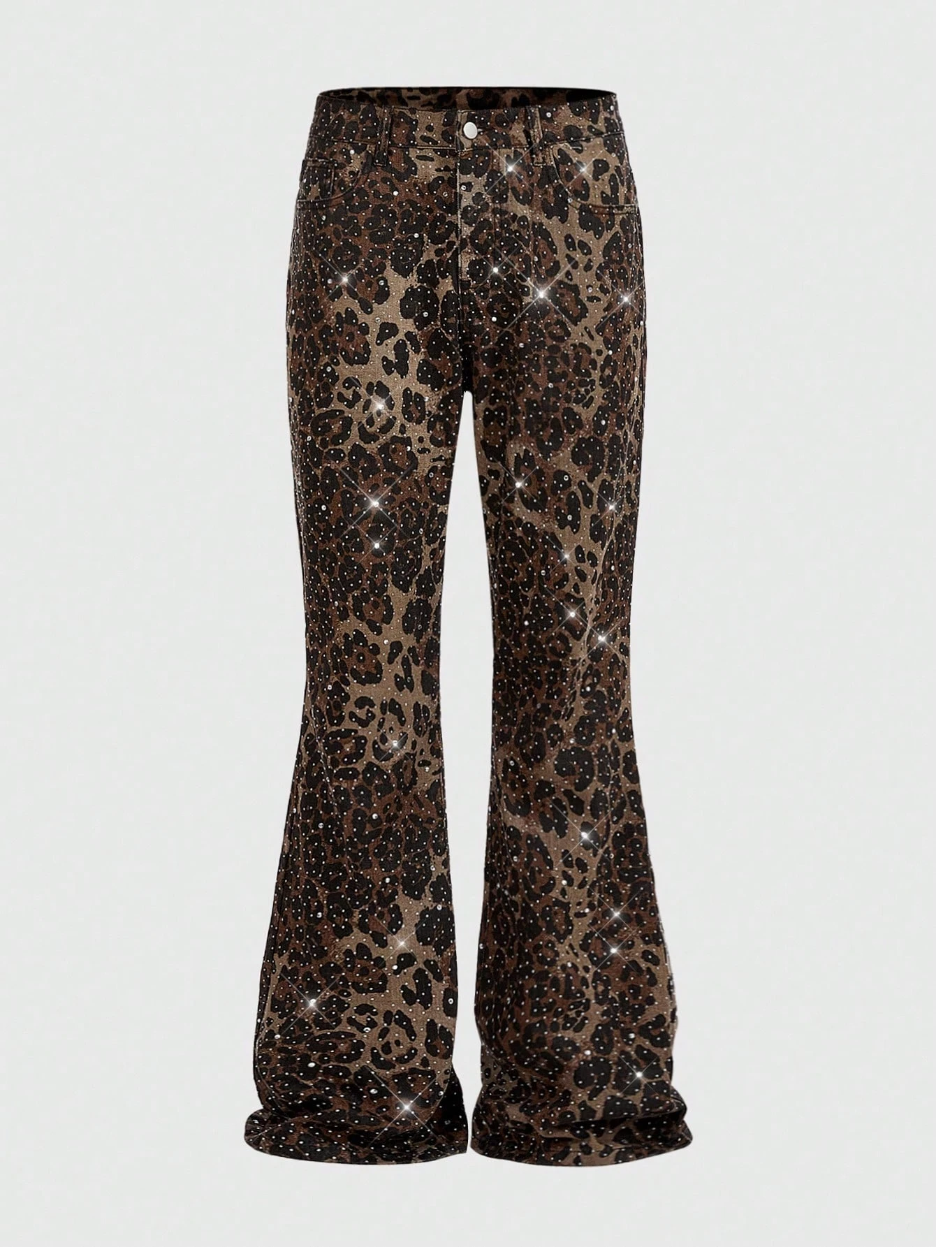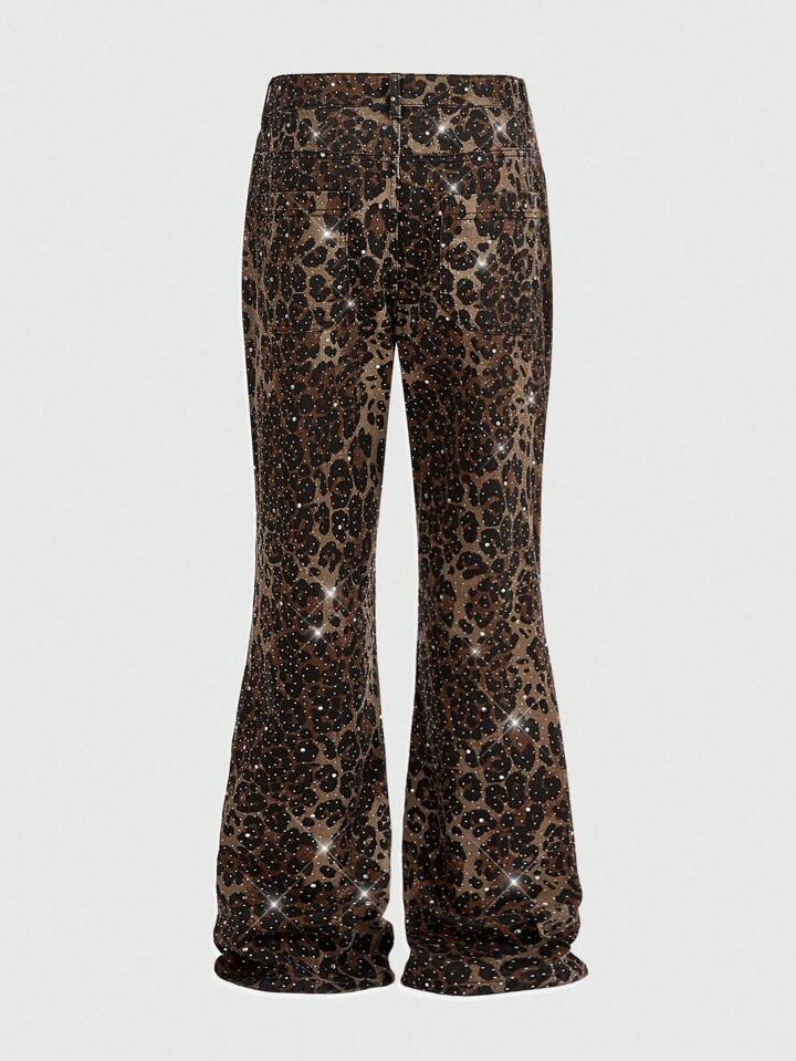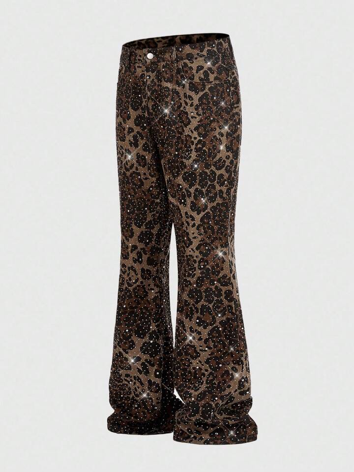 ROMWE Avant Men's Sparkling Diamond Layered Flare Leopard Print Jeans