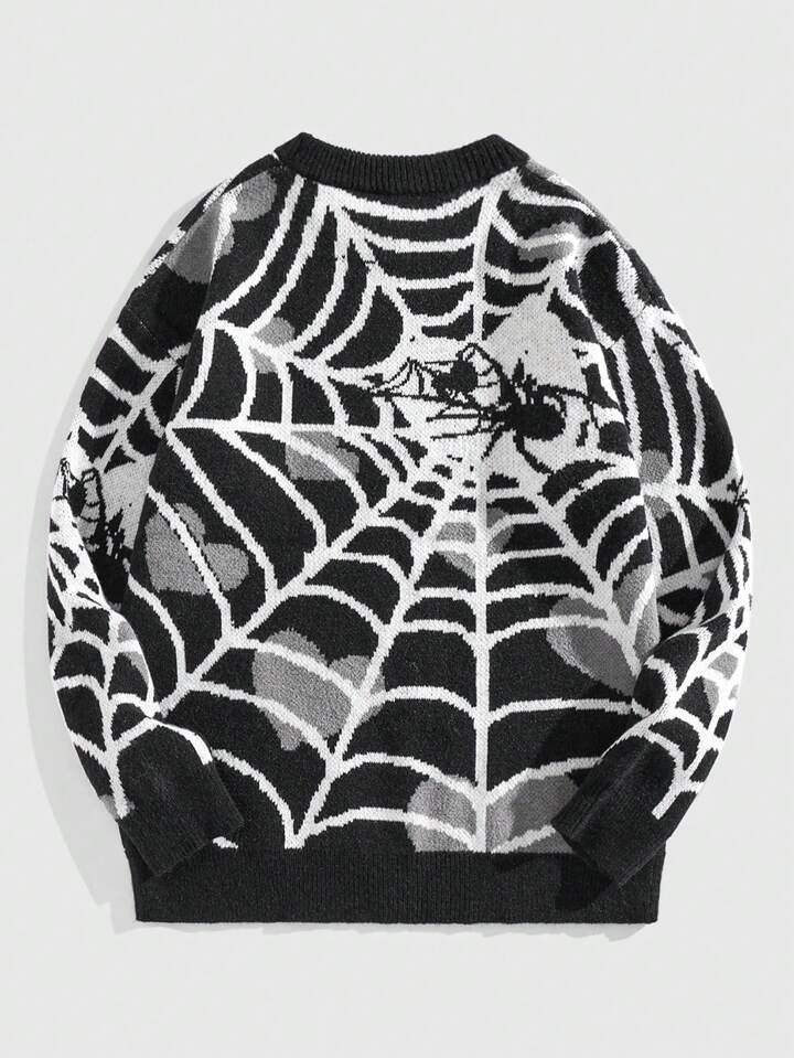ROMWE Avant Men's Spiderweb Print Crew Neck Long Sleeve Streetwear Sweater
