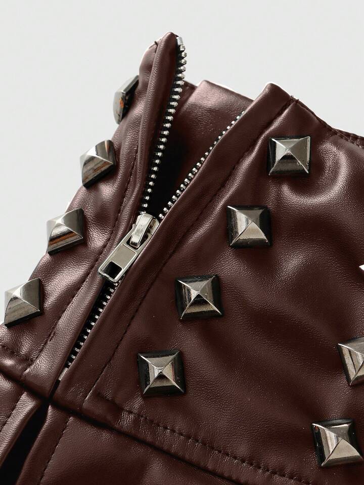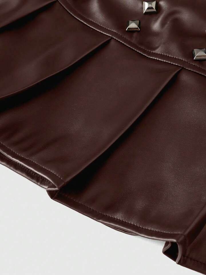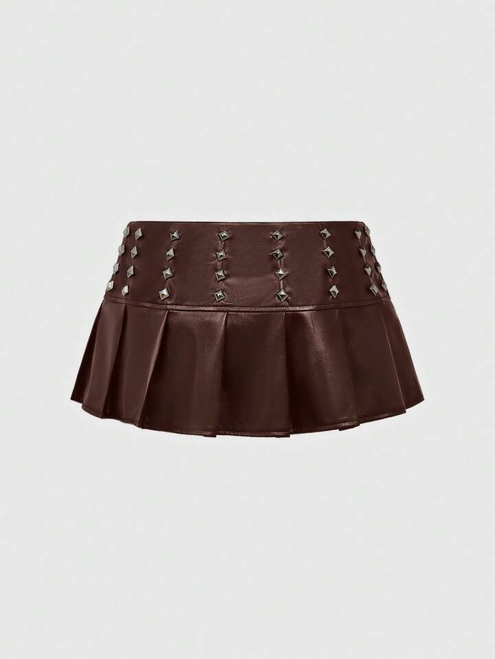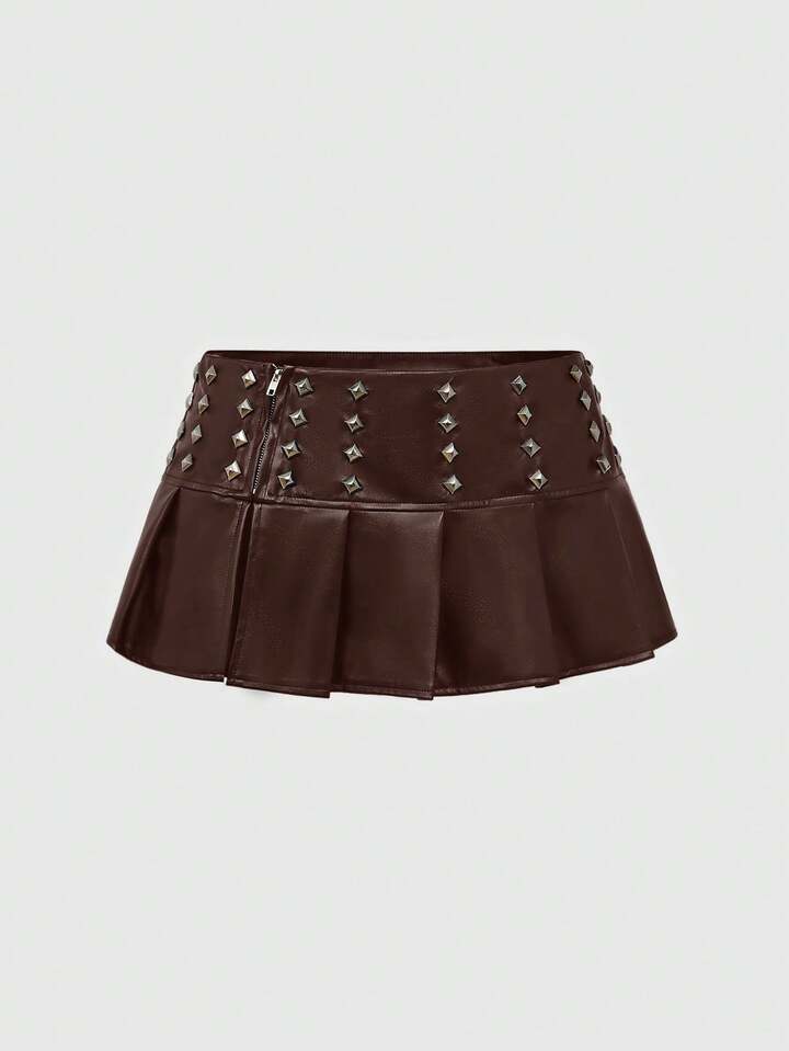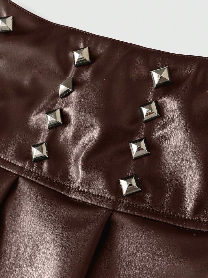 ROMWE Avant Music Festival PU Punk Rivet Super Low Waist Pleated Decor Women's Mini Skirt