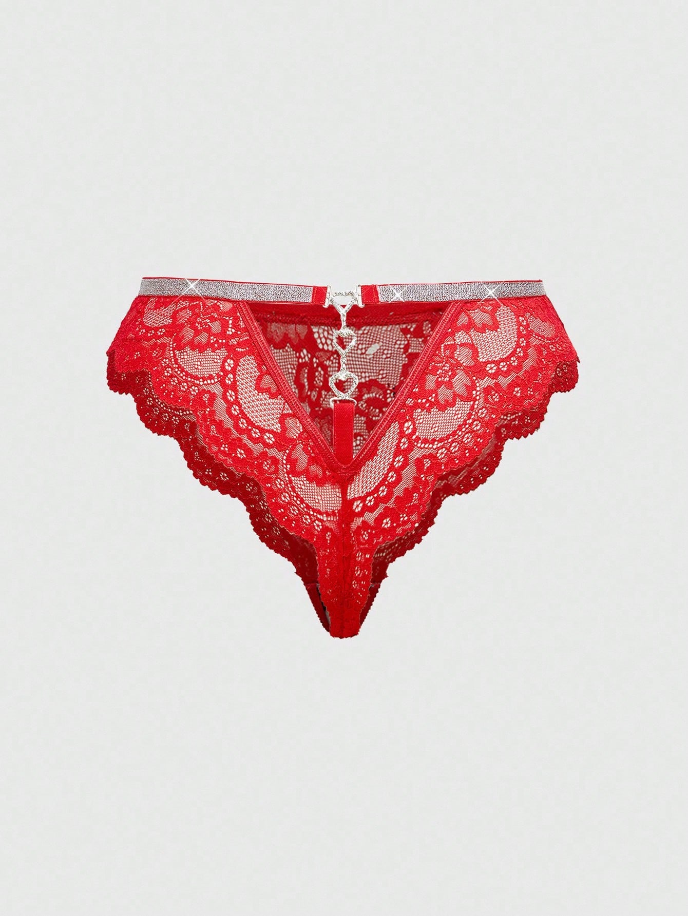 ROMWE Avant Plus Size Romantic Lace Sheer Heart Metal Sexy Panties