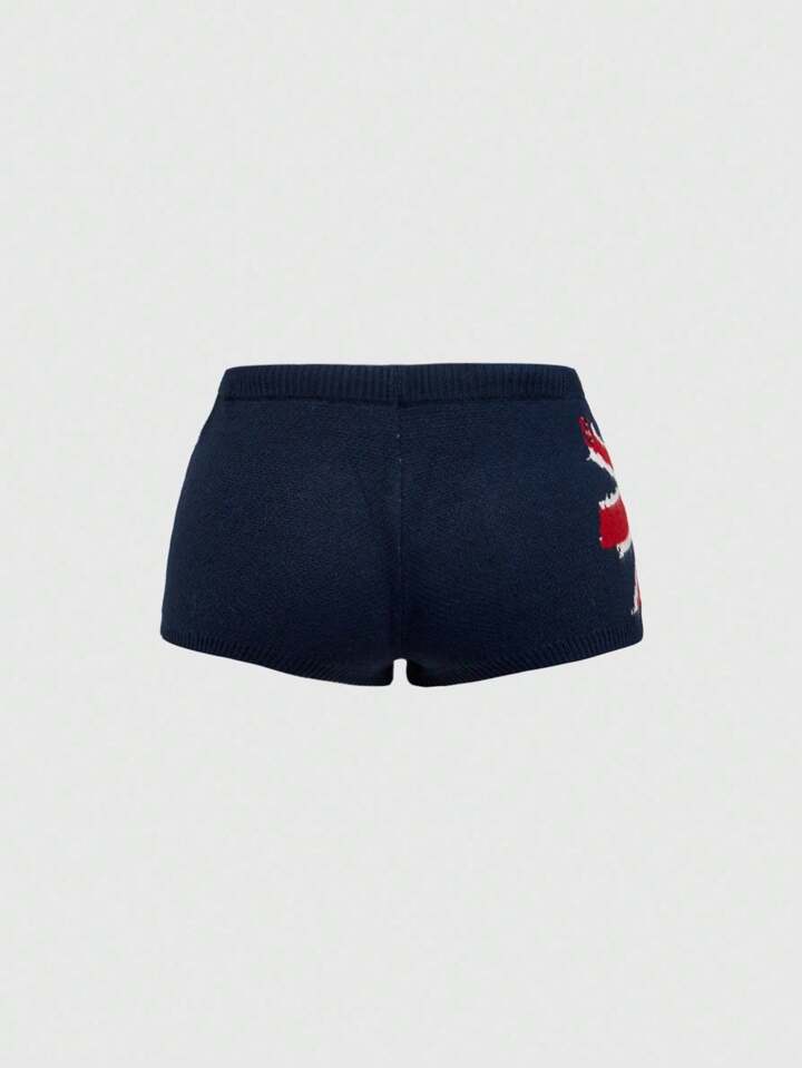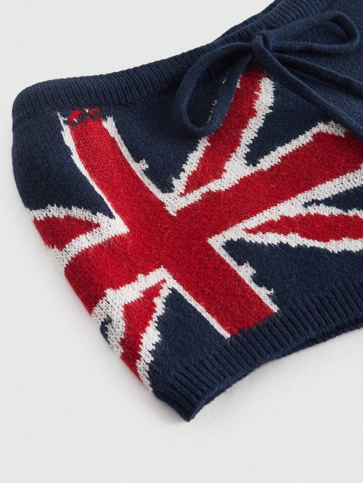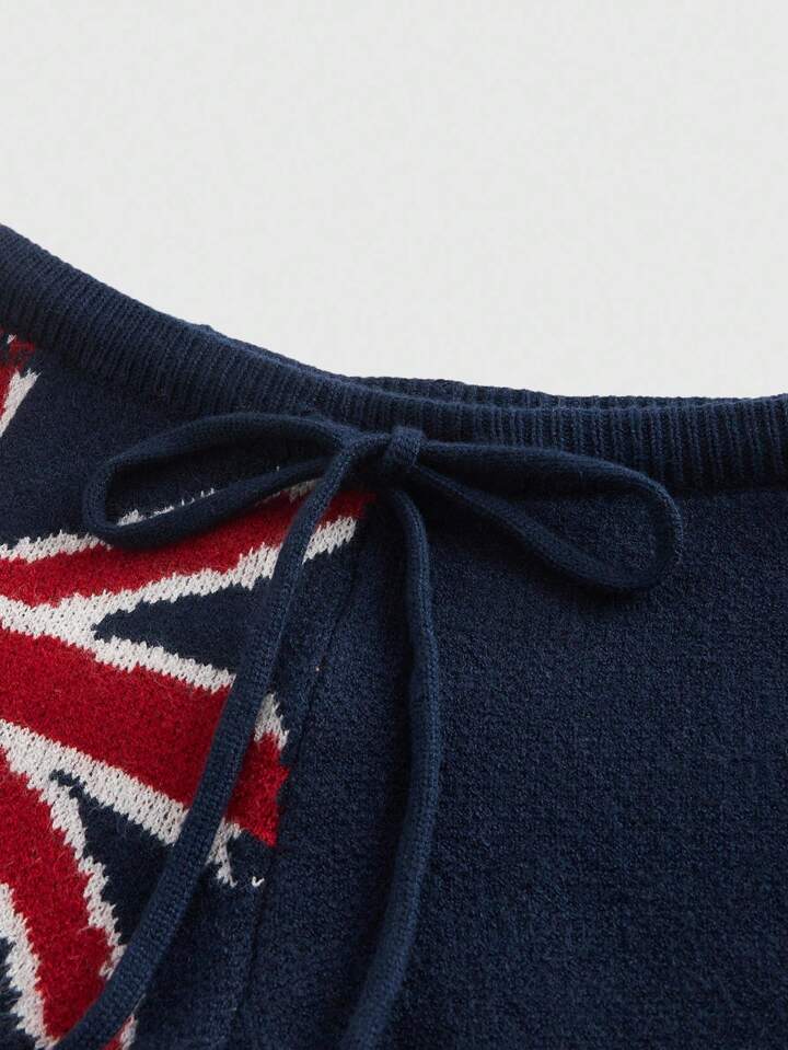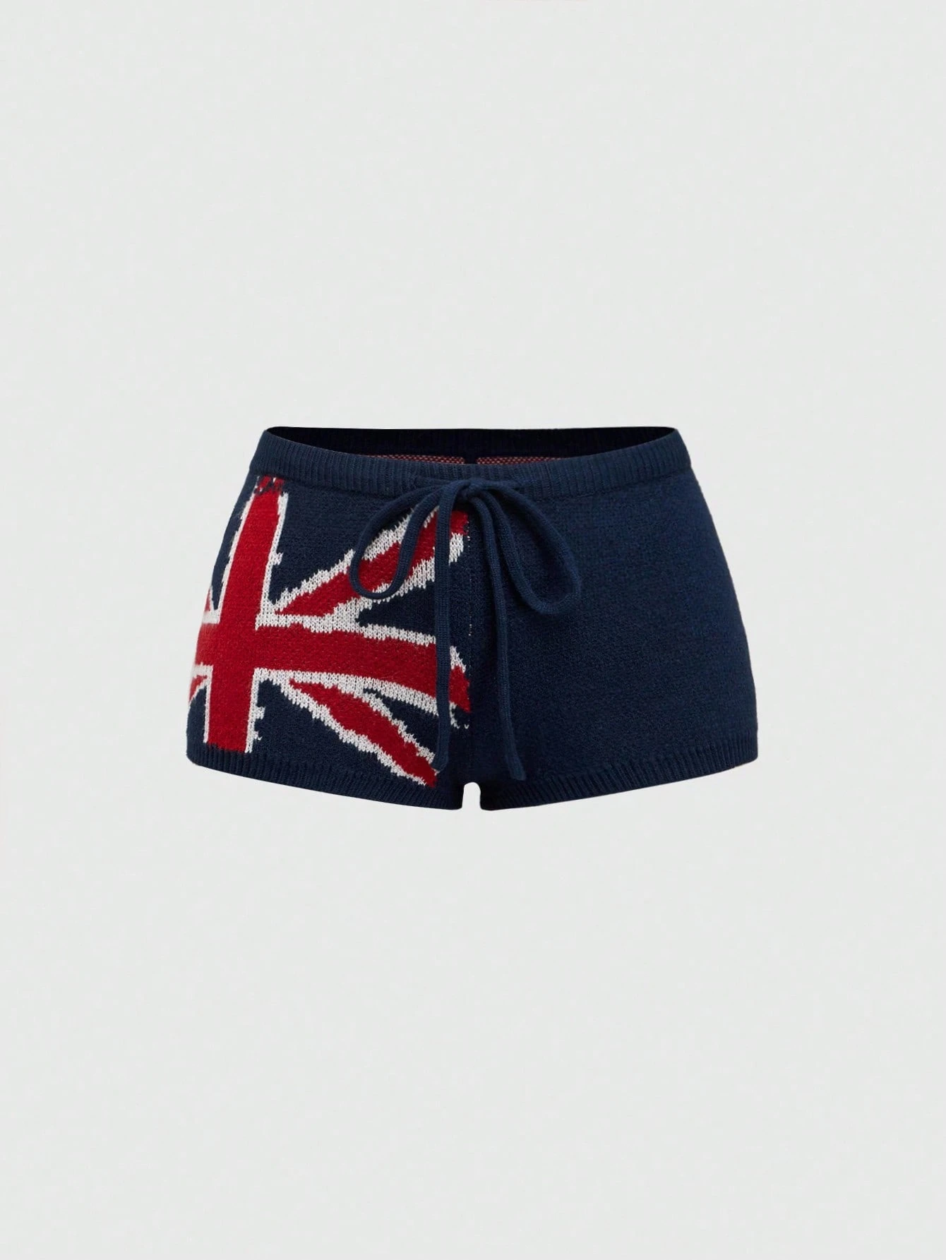 ROMWE Avant Retro American Street UK Flag Jacquard Women Kpop Sweater & Shorts Set